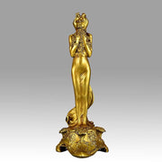 The Art Nouveau style of sculpture began as a French phenomenon, a demonstration of wealth looking for the latest ways to furnish homes. The Art Nouveau style was exploring themes such as nature, symbolism and the adoration of the female form. Art Nouveau sculptors broke away from the classical forms of sculpture that had been taught at the Ecole des Beaux Arts in Paris and started to create sensuous figures and busts of naked or semi-clad maidens entwined with flowers and dancing with lucid eroticism.