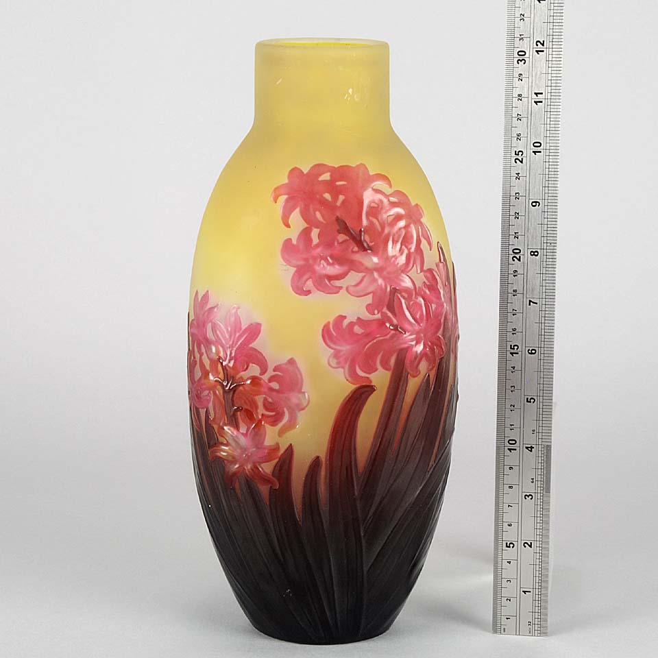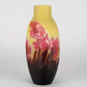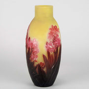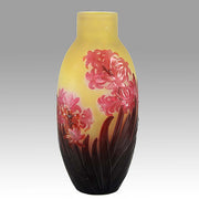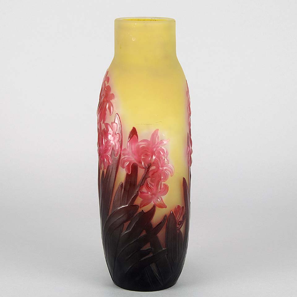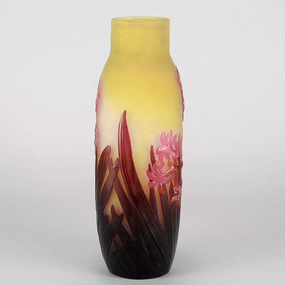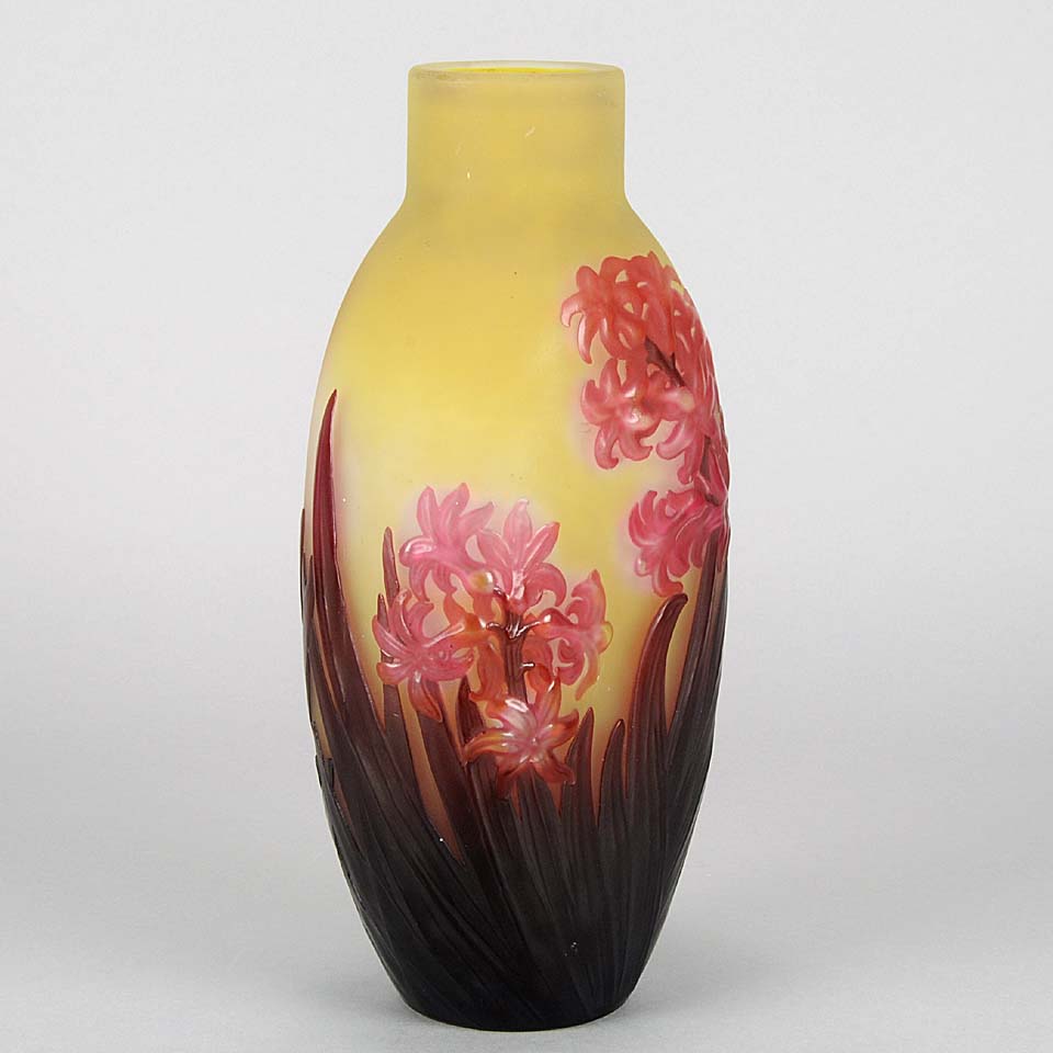 After being inspired by the glass works at the 1878 International Exhibition in Paris, particularly cameo works, Gallé made his mark as a true artist in glass at the 1884 Union Centrale des Arts Décoratifs in Paris where he showed 300 pieces of great artistic variety as well as technical expertise. He returned to the International Exhibition in Paris in 1889 to present his own new types of glass. The pieces featured new vase shapes, extraordinary new colours, carved cameo and pate de verre work. The event was a breakthrough for him and the Art Nouveau style in general, with his pieces beginning to be widely imitated (notably by the likes of the Daum brothers.)