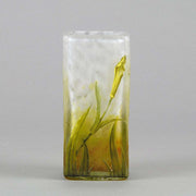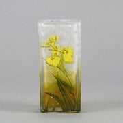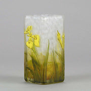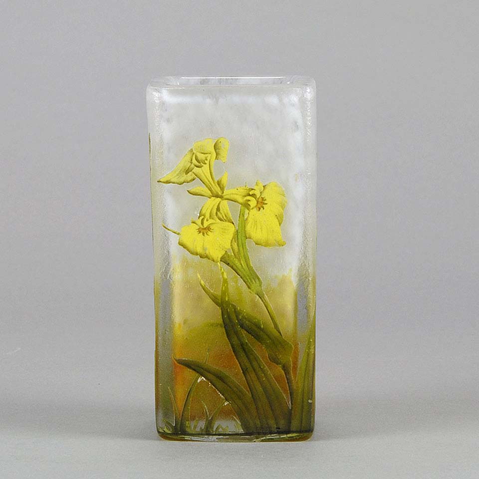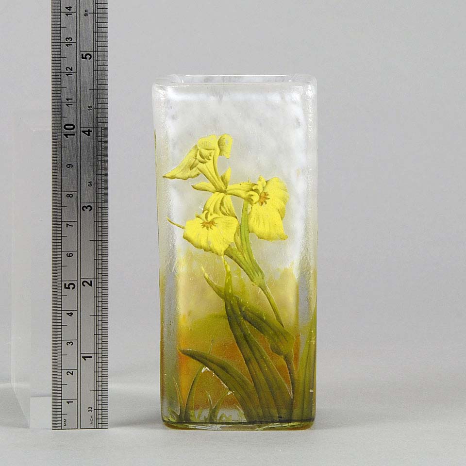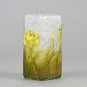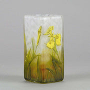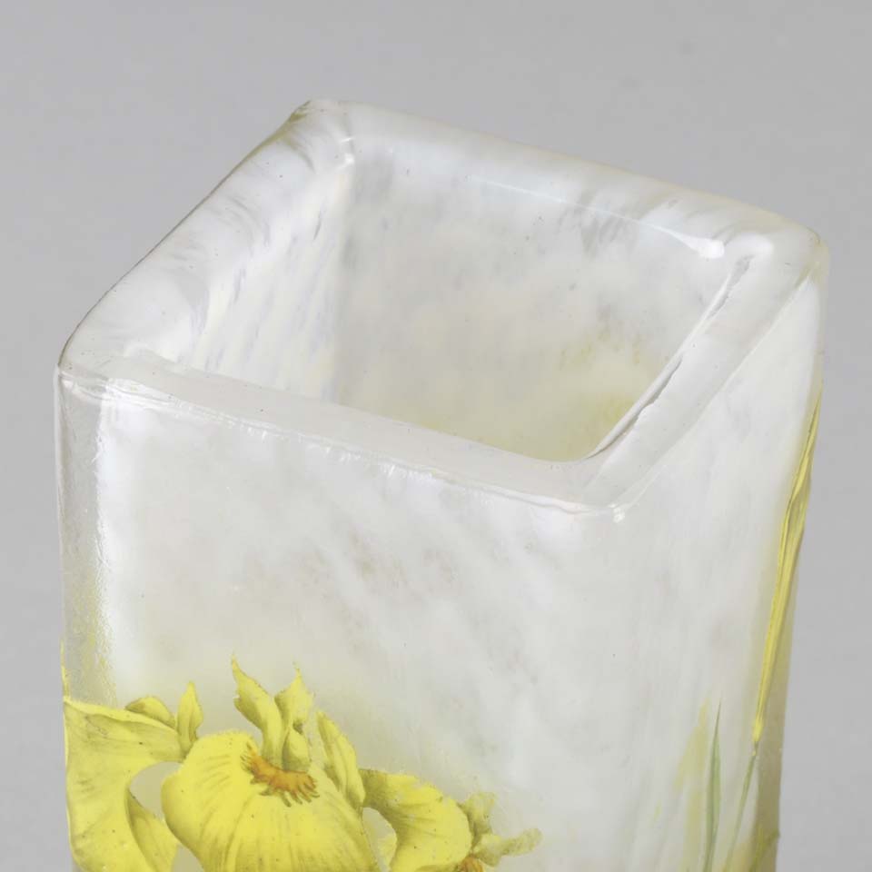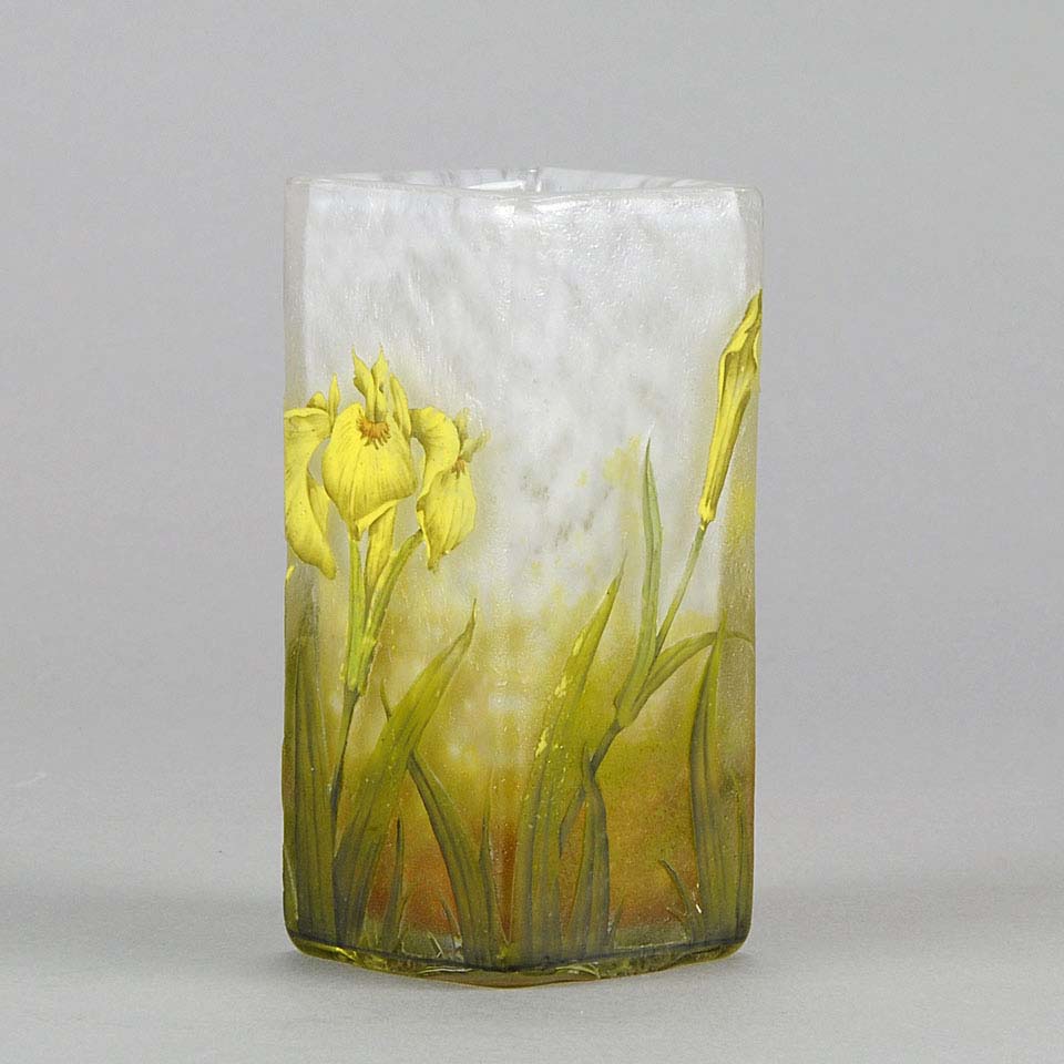 A very pretty early 20th Century cameo glass vase acid etched and enamel painted with blossoming irises against a white field with excellent colour and very fine detail, signed Daum Nancy with the Cross of Lorraine.