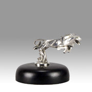 A striking early 20th Century Art Deco car mascot in the form of a powerful leaping lion with excellent detail and very fine silver plated finish to the bronze, raised on a wooden base and signed C Brau