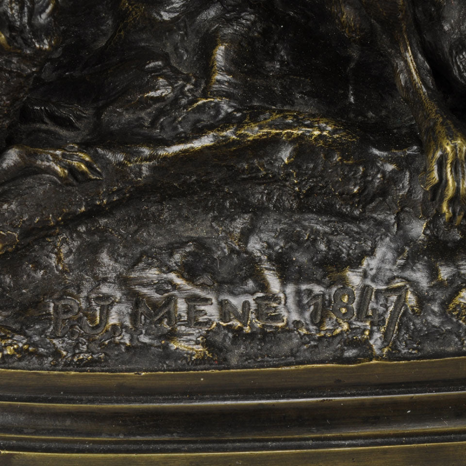 After Mêne’s death in 1879 the Barbedienne and Susse Frères foundries acquired the rights to reproduce his many of his important models and these posthumous casts are marked F Barbedienne Fondeur and Susse Frères fondeur editeur respectively. These bronzes are of a fine quality and are cast by the leading bronze foundries in the late 19th and early 20th Centuries, however they do not have the vitality and attention to detail that Mêne achieved on the casts from his own foundry.