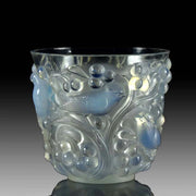 Among his most famous Art Deco works are perfume bottles, vases, car mascots (hood ornaments), and dining sets. Perfume bottles made for Coty and other luxury brands exemplified the union of fine design and practical function. Lalique’s vases, such as the "Bacchantes" or "Formose" designs, displayed his technical mastery and imaginative vision. His car mascots—crystal representations of animals, nudes, and birds—were mounted on luxury automobiles and remain iconic collectibles today.