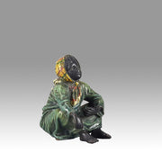An excellent early 20th Century cold painted Vienna bronze study of a seated Arab girl with a look of deep contemplation on her face, exhibiting fabulous colour and very fine detail, signed with the Bergman ‘B’ in an amphora vase