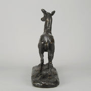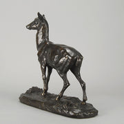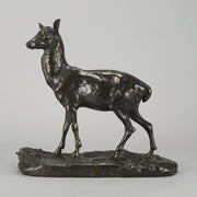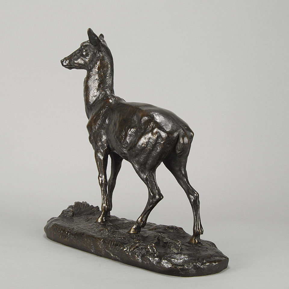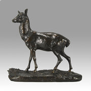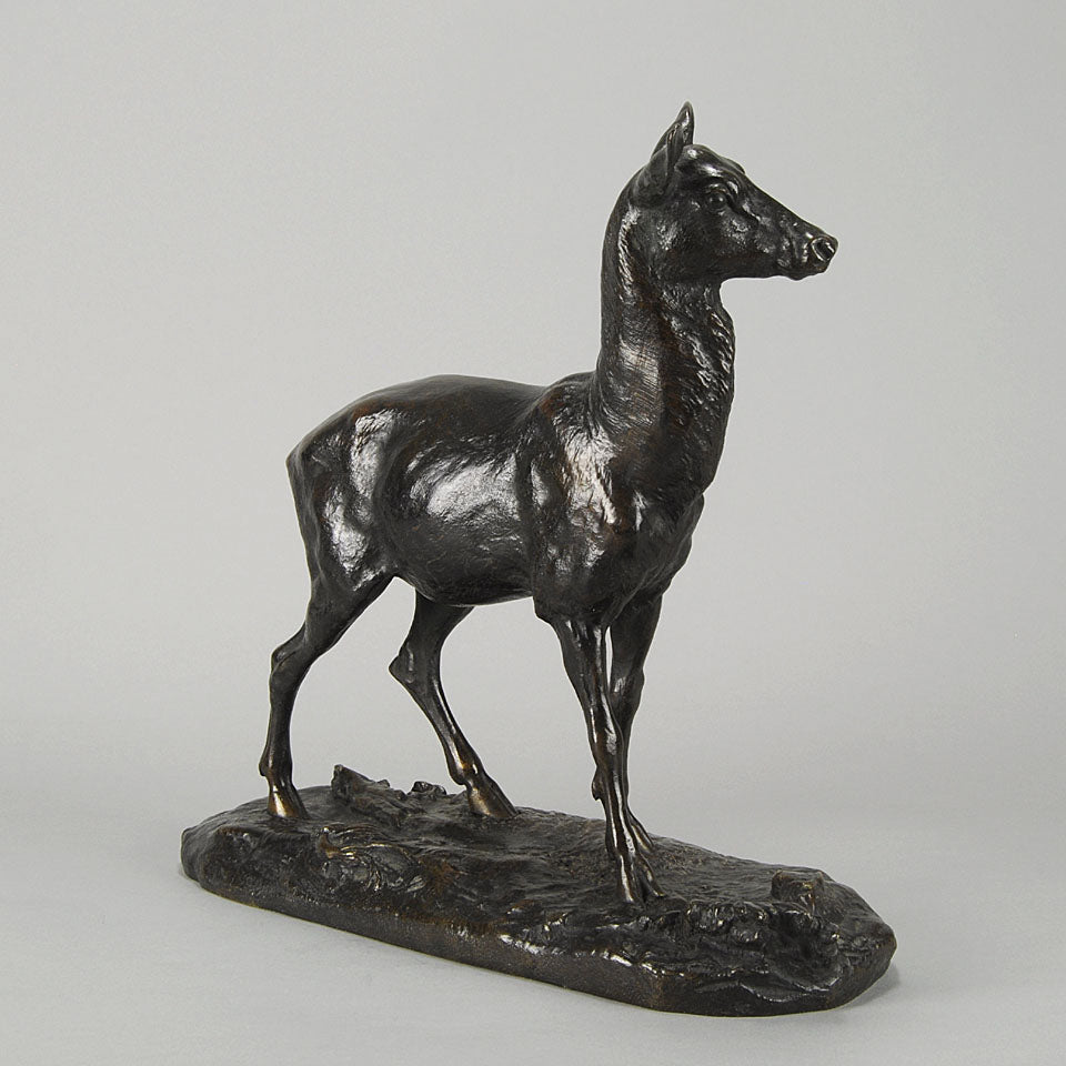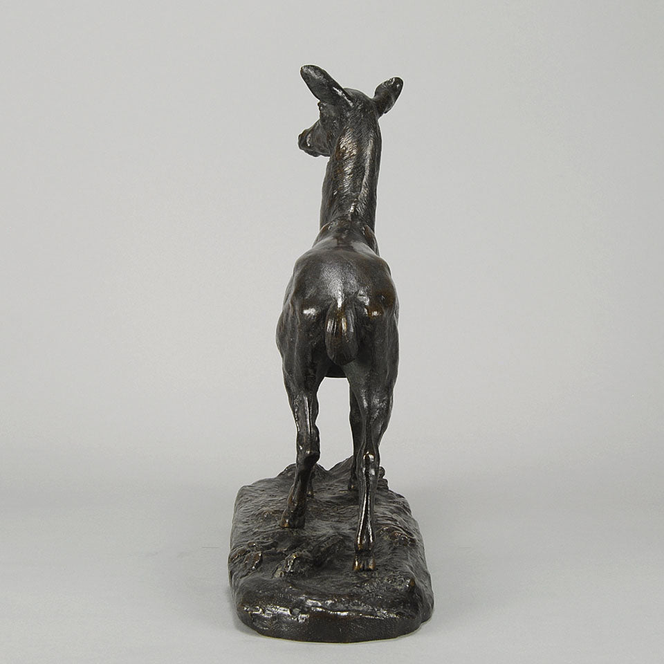 Very fine French animalier bronze study of a standing doe with good rich brown patination and fine hand chased surface detail. Raised on a naturalistic base, signed Comolera and dated 1867