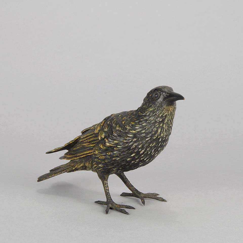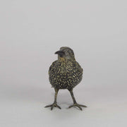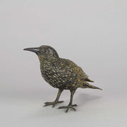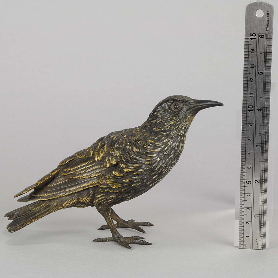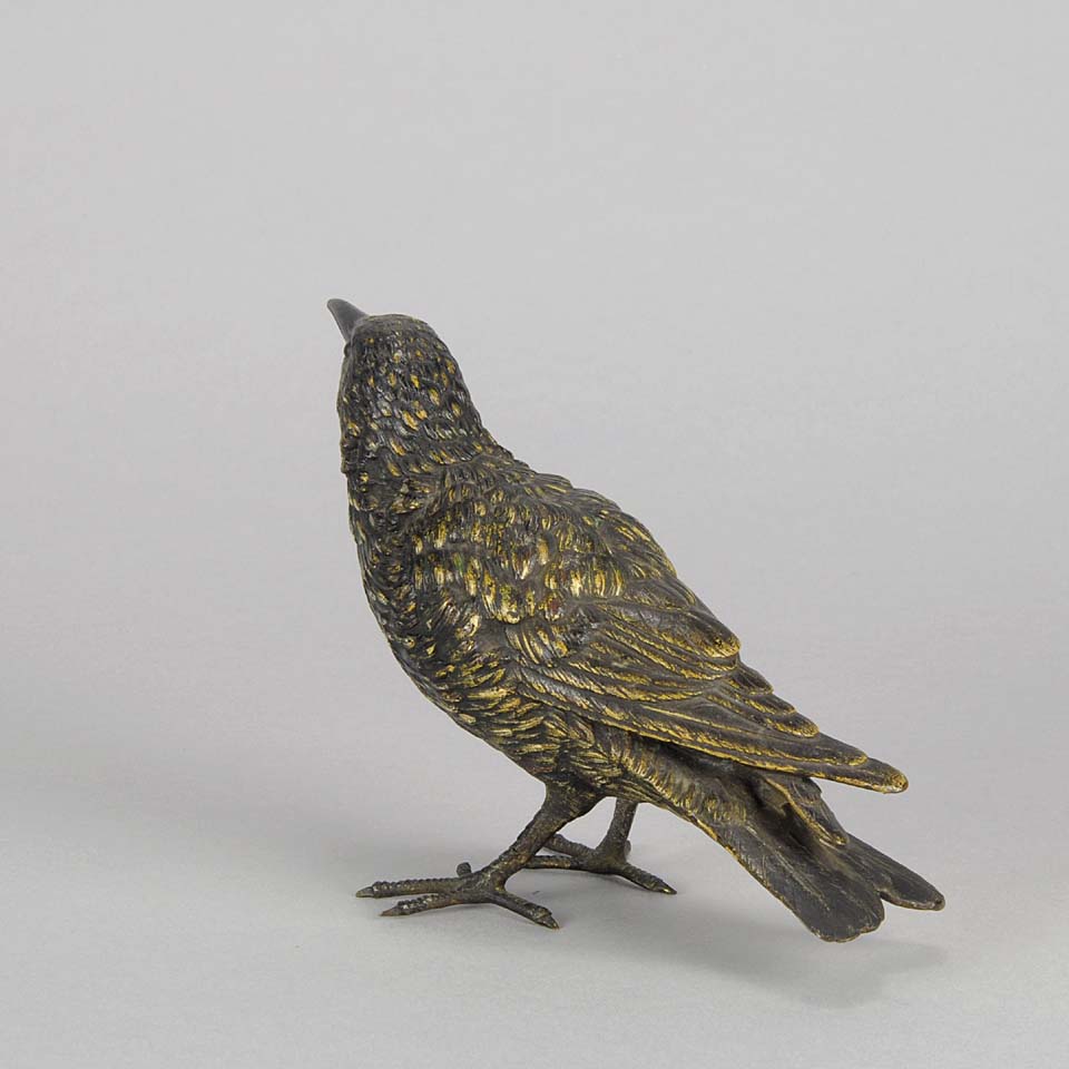 A very fine early 20th Century cold painted Austrian bronze study of a  standing starling with excellent hand chased surface detail and fine naturalistic colour, signed with the Bergman ‘B’ in an amphora vase