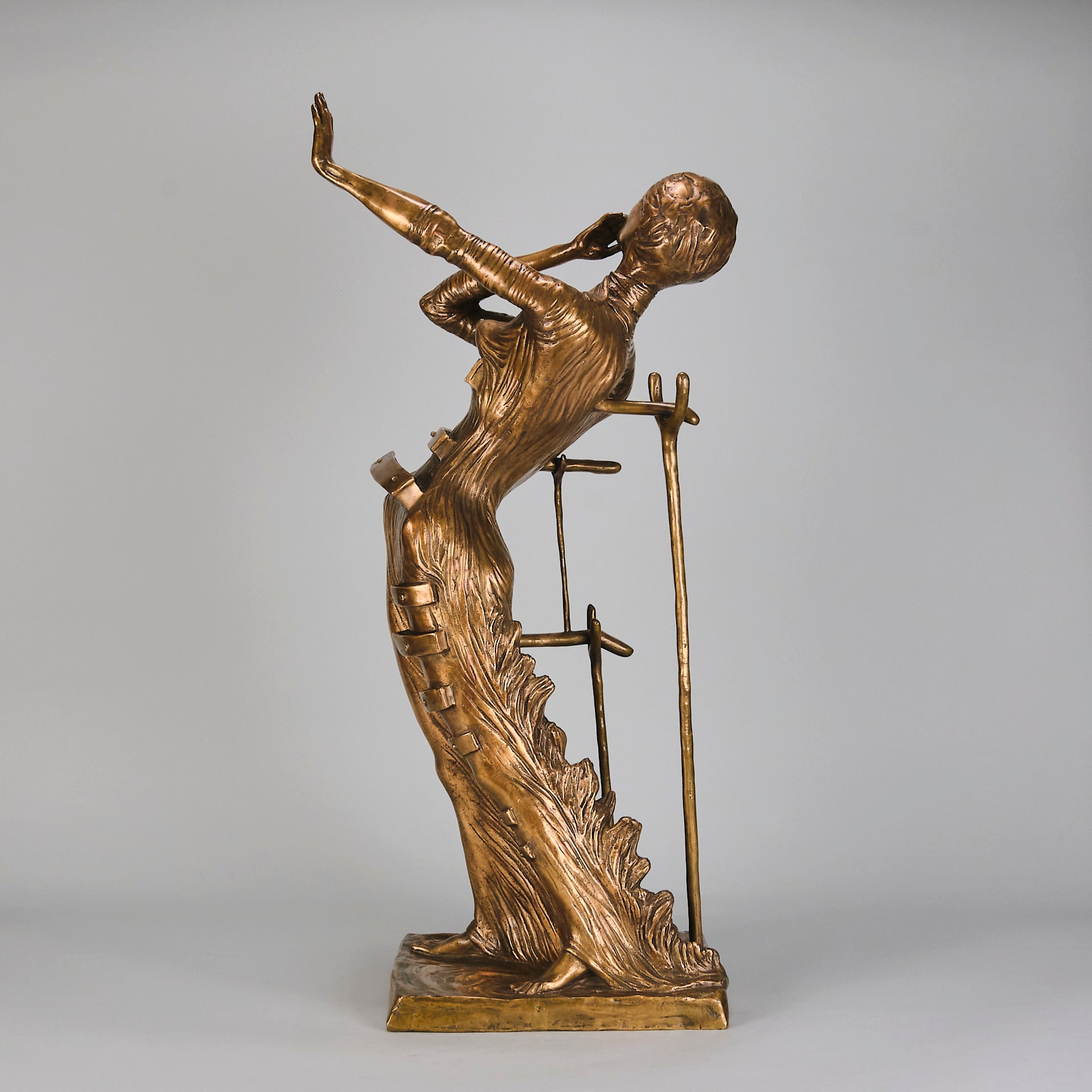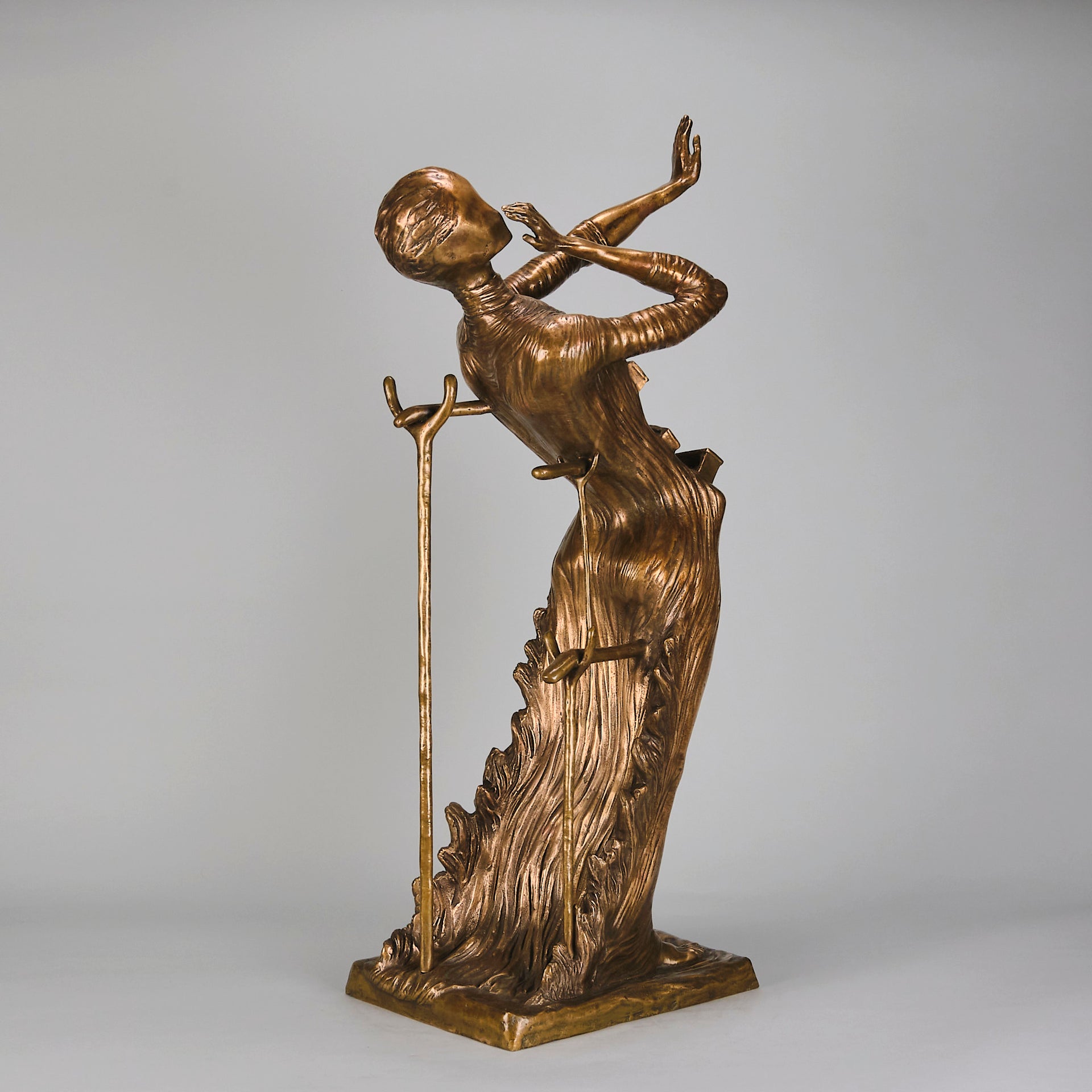An important limited edition bronze study of a standing woman with both realistic and surreal components. The bronze with excellent detail and rich golden brown patina depicting a young woman supported by crutches being engulfed by flames. Signed Dali numbered 42 / 350, with the 'Fonderia Artistica' foundry stamp. Note: this bronze has been authenticated by Bruce Hochman® ™ OS. See https://www.daligallery.com/authentication.