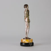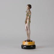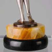 Although very little is known about Lorenzl’s early life, he was born in Austria in 1892 and became one of the most talented sculptors of the Art Deco Period. He started by working for a bronze foundry in Vienna Arsenal where he produced stunning Art Deco bronze statuettes. The majority of his works in bronze and chryselephantine were of singular slim female nudes with long legs which conveyed elegance. His preference was for dancing poses which were not only evident in his singular statuettes but also in those attached to marble clocks, lamp bases and bookends.
