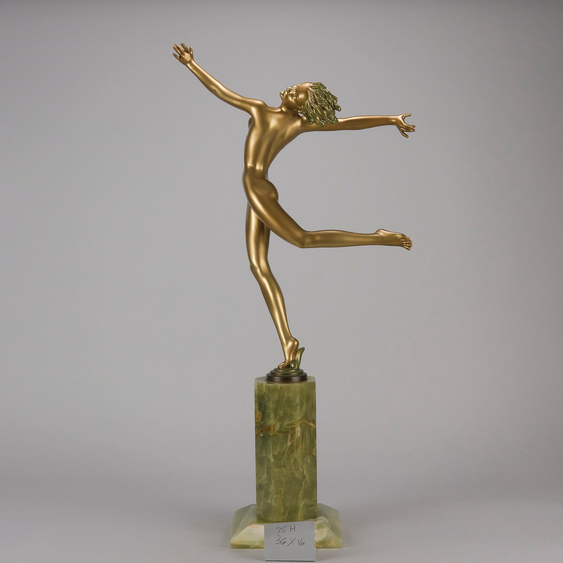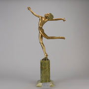 Although very little is known about Lorenzl’s early life, he was born in Austria in 1892 and became one of the most talented sculptors of the Art Deco Period. He started by working for a bronze foundry in Vienna Arsenal where he produced stunning Art Deco bronze statuettes. The majority of his works in bronze and chryselephantine were of singular slim female nudes with long legs which conveyed elegance. His preference was for dancing poses which were not only evident in his singular statuettes but also in those attached to marble clocks, lamp bases and bookends.