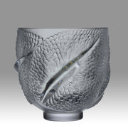 Rare and impressive mid 20th Century frosted glass vase by Marc Lalique, the surface decorated with clear glass andromeda leaves against frosted glass feathering with excellent detail, signed Lalique France