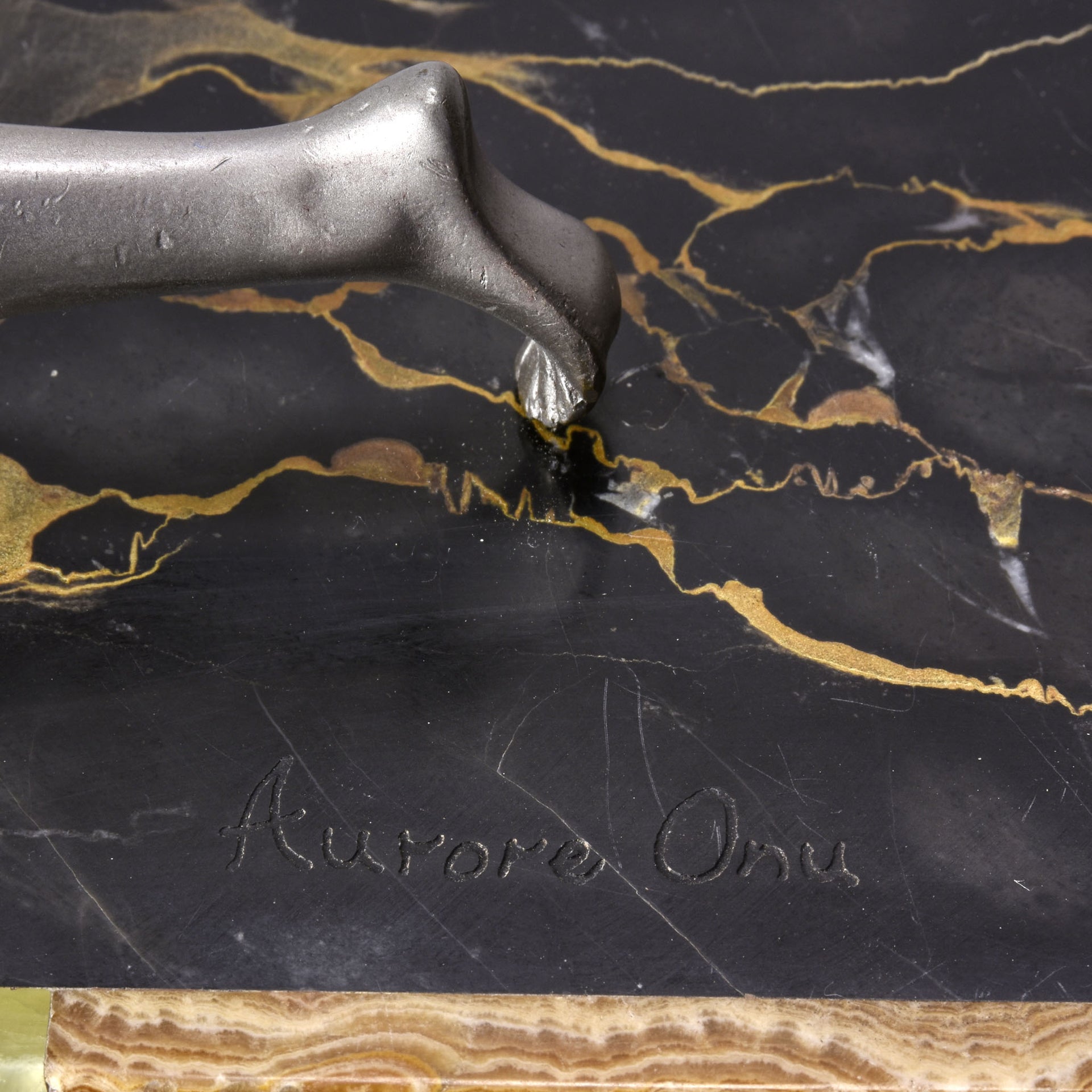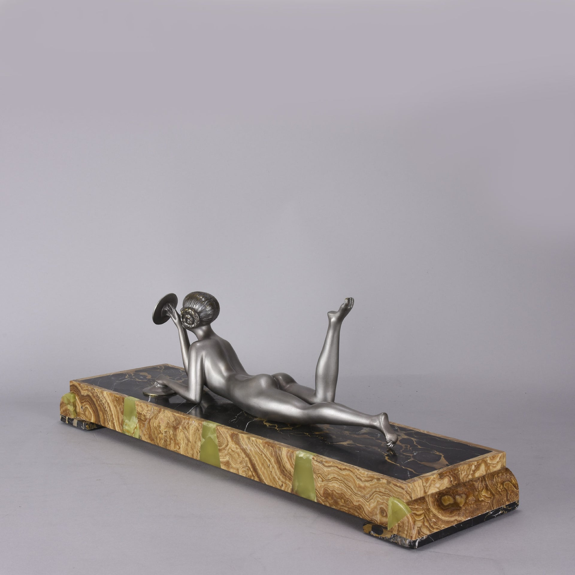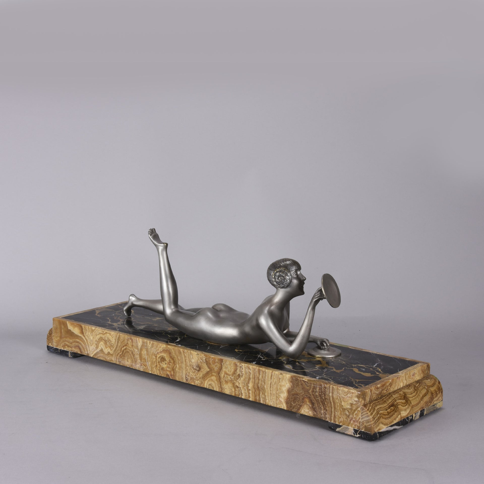 Aurore Onu - French, Early 20th Century ~ Onu was a companion of M Bouraine. Their address in the 1920s was also very close to the home of Pierre Le Faguays. Onu executed a number of sculptures in bronze as well as bronze and ivory for the film of Les Neveux de J Lehmann, and she exhibited one of these, Bacchante au Thyrse, a femal faun with a circular thyrsus, at the 1924 Salon des Artistes Francais. Her figures are mainly athletic female figures showing both beauty and elegance.