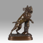 Captivating animal bronze study of an energetic hound tethered to a post with good rich brown lightly rubbed colour, raised on integral stepped base and signed P Lecourtier further inscribed to the front Beaux Arts 1878.