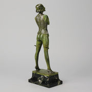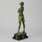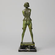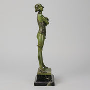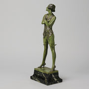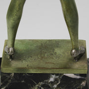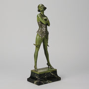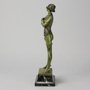 Bruno Zach (Ukrainian, 1891 – 1945) – Bruno Zach was a prolific creator of tall, athletic, independent women in bronze and ivory. He depicted both the healthy outdoor pursuits, and also the dream mistresses of the demi monde of Berlin, Paris and Vienna between the wars. His bronze is occasionally patinated, most often cold painted. His use of ivory is spare and always well carved. His work was edited by several firms, including Argentor-Werke of Vienna the Broma Companie, S Altmann & Co, and Bergmann.