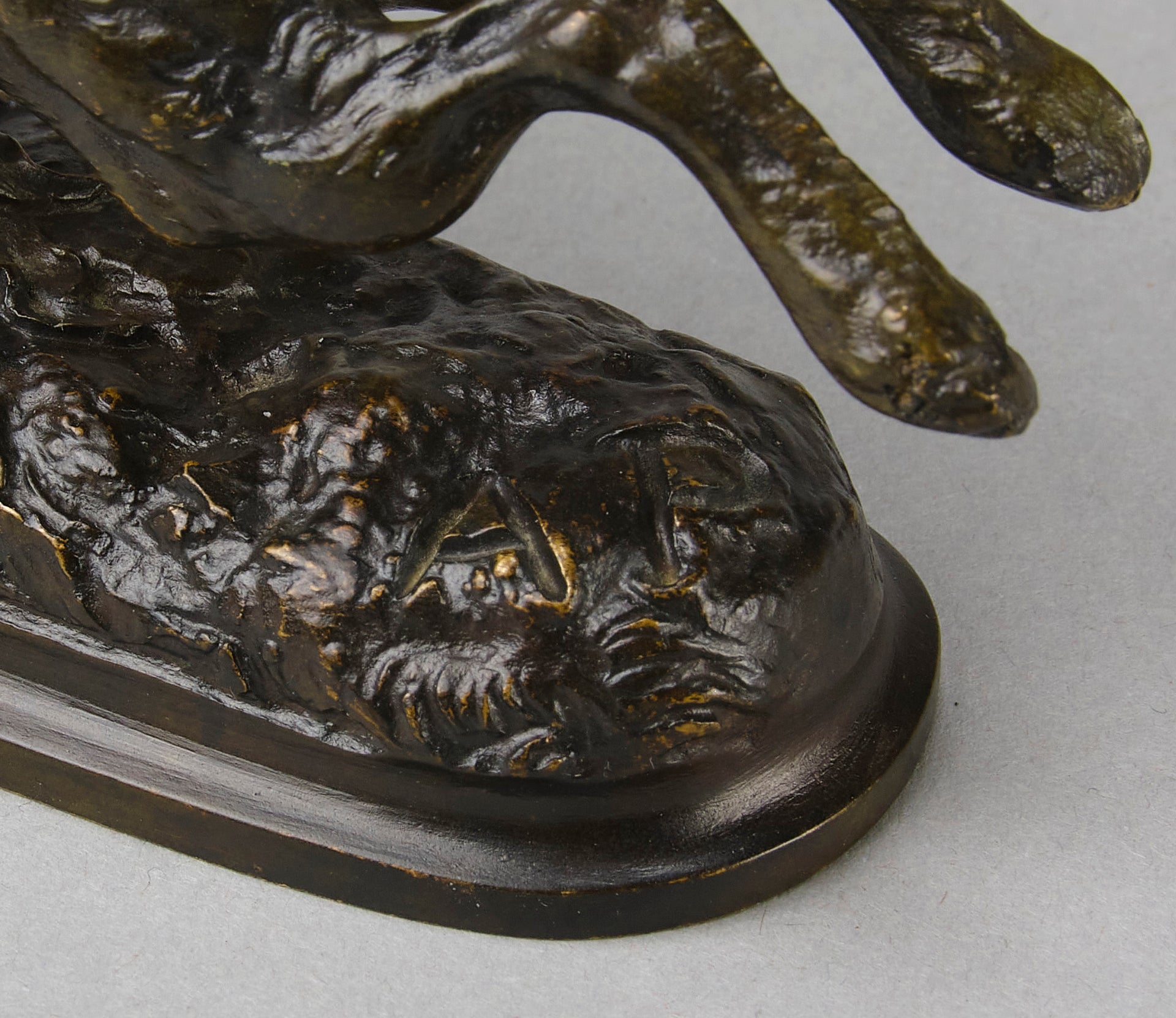 Arthur-Marie-Gabriel Comte du Passage (French, 1838 ~1909) was a French sculptor who was born and died at the Chateau de Frohen. Throughout his military career he studied animal sculpture under Barye and Mêne, thus learning his techniques from the best masters of the art of animalier sculpture. He exhibited at the Salon from 1865~93. Most of his subjects are of horses and hunting scenes but includ smaller models of game animals.