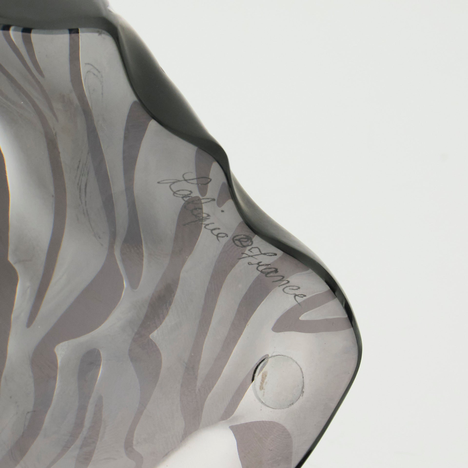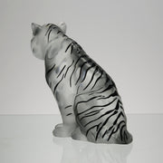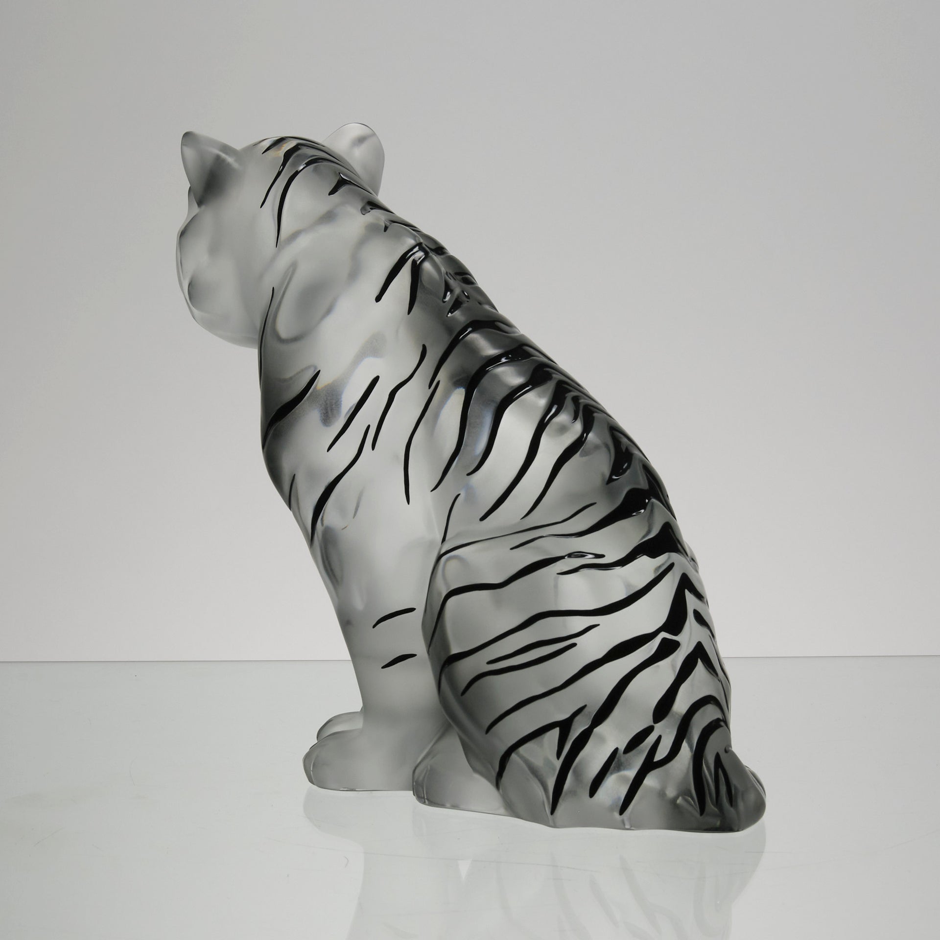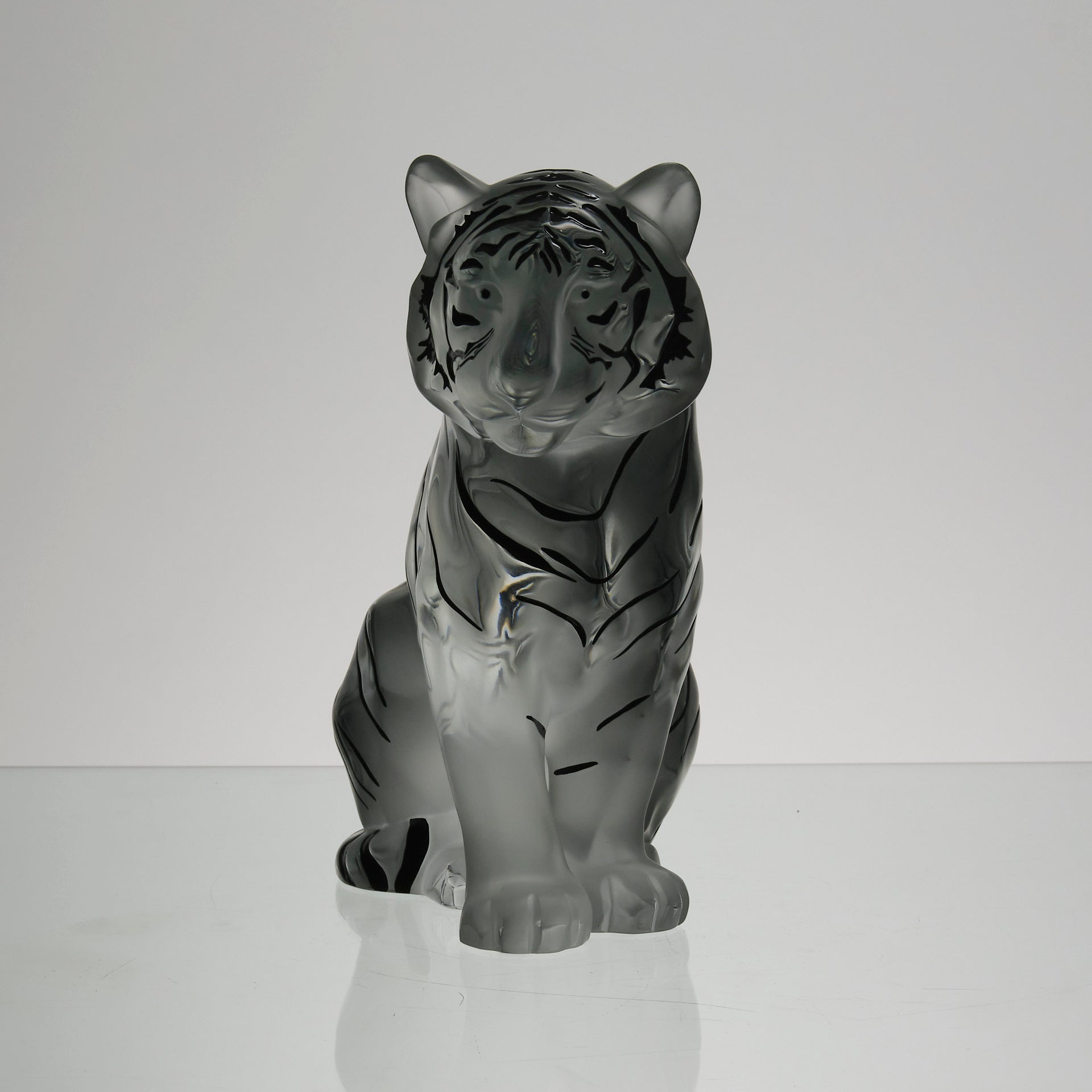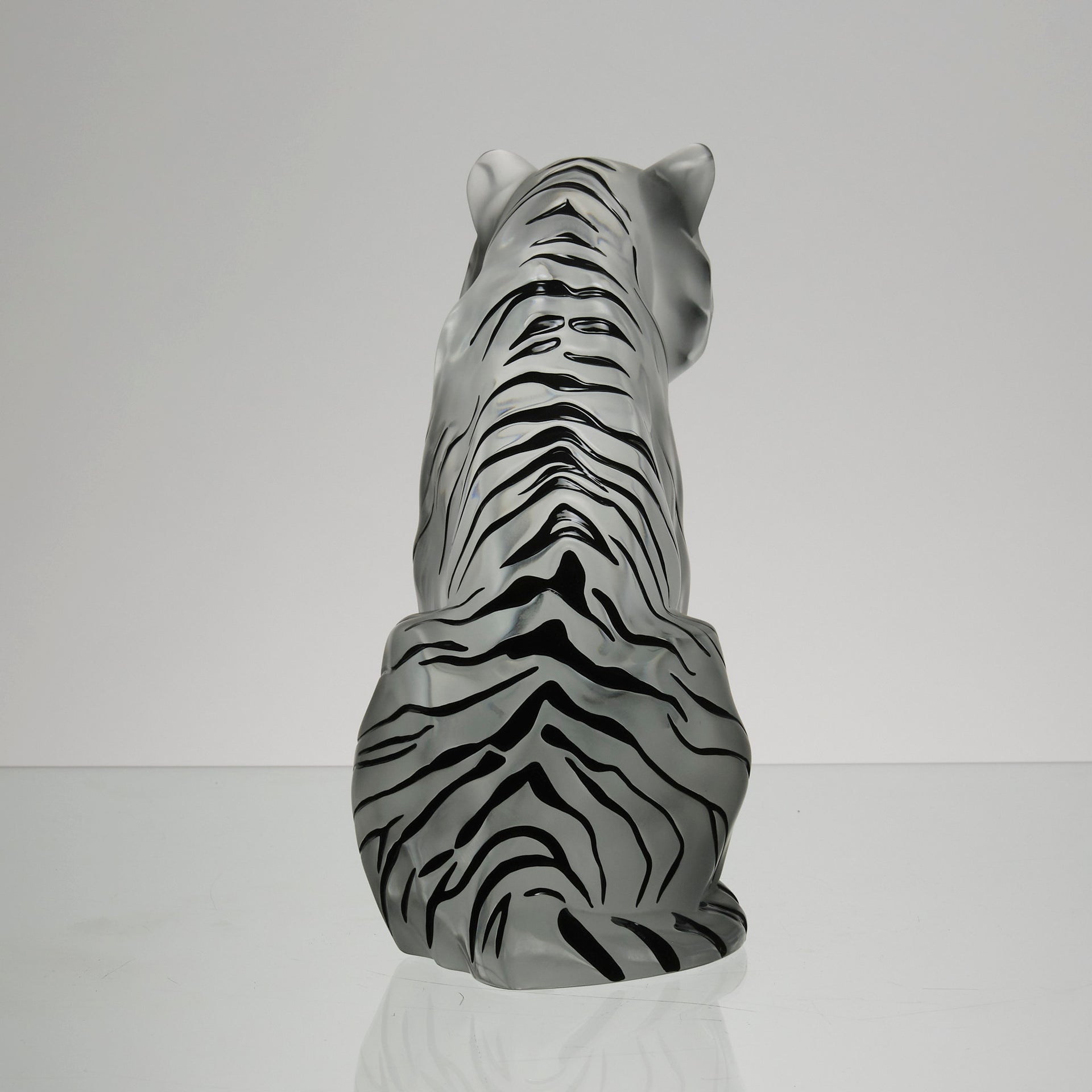 A majestic limited edition frosted and clear glass figure of a seated tiger heightened with black enamel stripes exhibiting excellent hand finished surface detail, signed Lalique France