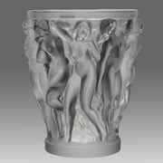 In 1927, René Lalique’s boundless imagination and creative genius lead to the creation of the Bacchantes vase. The iconic design features the young priestesses of Bacchus with their voluptuous beauty and curves. A work of unparallel beauty, the splendor and sensuality of the vase continue to leave admirers spellbound. Since its original release, it has been a staple in the Lalique collection and has become a lasting symbol of Lalique’s celebrated style. The extra large version of this iconic vase is intended for collectors worldwide. Its meticulous detailing, carved by hand, adds a playful use of light and dimension.
