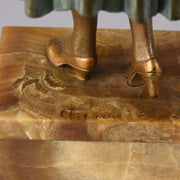 Chiparus's early figures, those on a relatively simple bases, were primarily cast by Etling, a Paris foundry the retailer of contemporary French decorative arts in the 1920s and 1930s. The later pieces were made by the Les Neveux de J Lehmann foundry which specialised in making the more elaborate marble and onyx plinths like the one on this figure Simplicité.