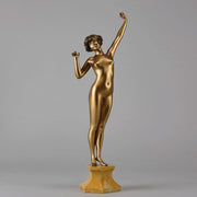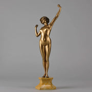 An excellent French early 20th Century Art Deco cold painted gilt and enamel bronze figure of a naked attractive woman as she stretches in the morning, raised on fitted marble base & signed P.Philippe and numbered