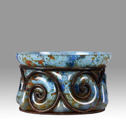 Louis-Jean-Sylvestre Majorelle, usually known simply as Louis Majorelle, (26 September 1859 – 15 January 1926) was a French decorator and furniture designer who manufactured his own designs, in the French tradition of the ébéniste. He was one of the outstanding designers of furniture in the Art Nouveau style, and after 1901 formally served as one of the vice-presidents of the École de Nancy. Majorelle teamed on to create a variety of glass vases of different shapes complemented with worught iron decoration.