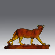 A fabulous limited edition pate de verre glass study of a leopard walking steadily across a branch exhibiting vibrant translucent colours ranging from a deep red to a light yellow, signed Daum France, numbered 35/500