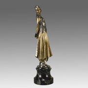 Chiparus’s early figures, those on a relatively simple bases, were primarily cast by Etling, a Paris foundry the retailer of contemporary French decorative arts in the 1920s and 1930s. The later pieces were made by the Les Neveux de J Lehmann foundry which specialised in making the more elaborate marble and onyx plinths.