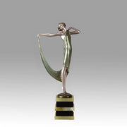Although very little is known about Lorenzl’s early life we are aware that he was born in Austria in 1892 and was soon to become one of the most talented sculptors of the Art Deco Period. He started by working for a bronze foundry in Vienna Arsenal where he produced stunning Art Deco bronze statuettes. The majority of his works in bronze and ivory were of singular slim female nudes with long legs which conveyed elegance. His preference was for dancing poses which were not only evident in his singular statuettes but also in those attached to marble clocks, lamp bases and bookends.