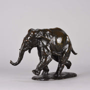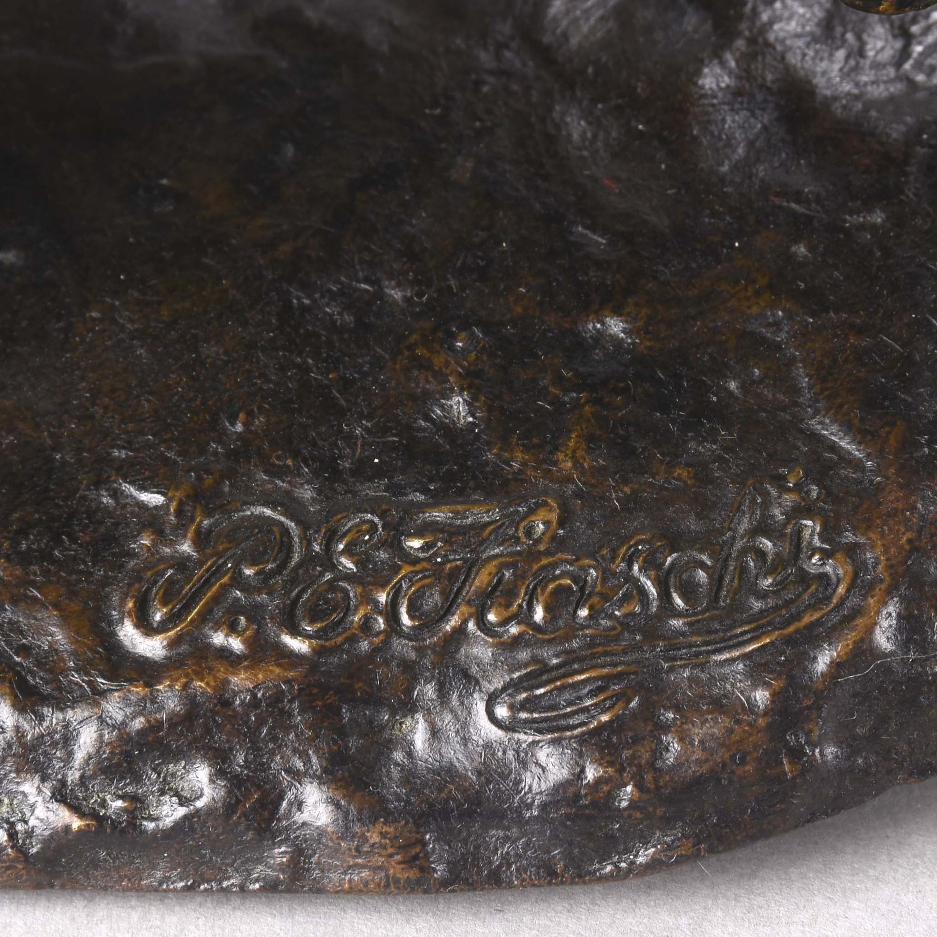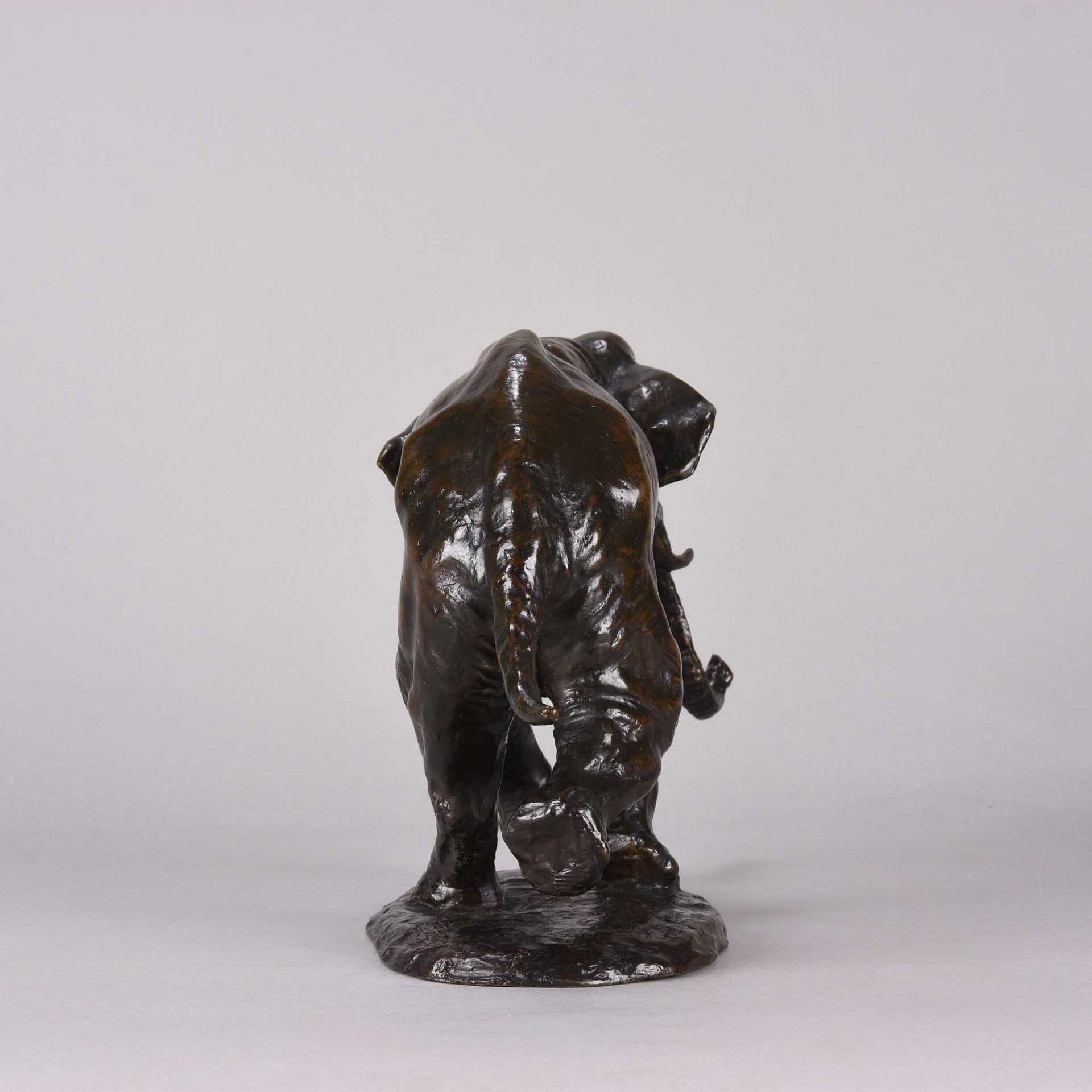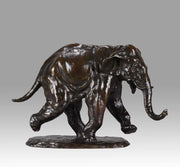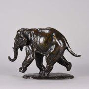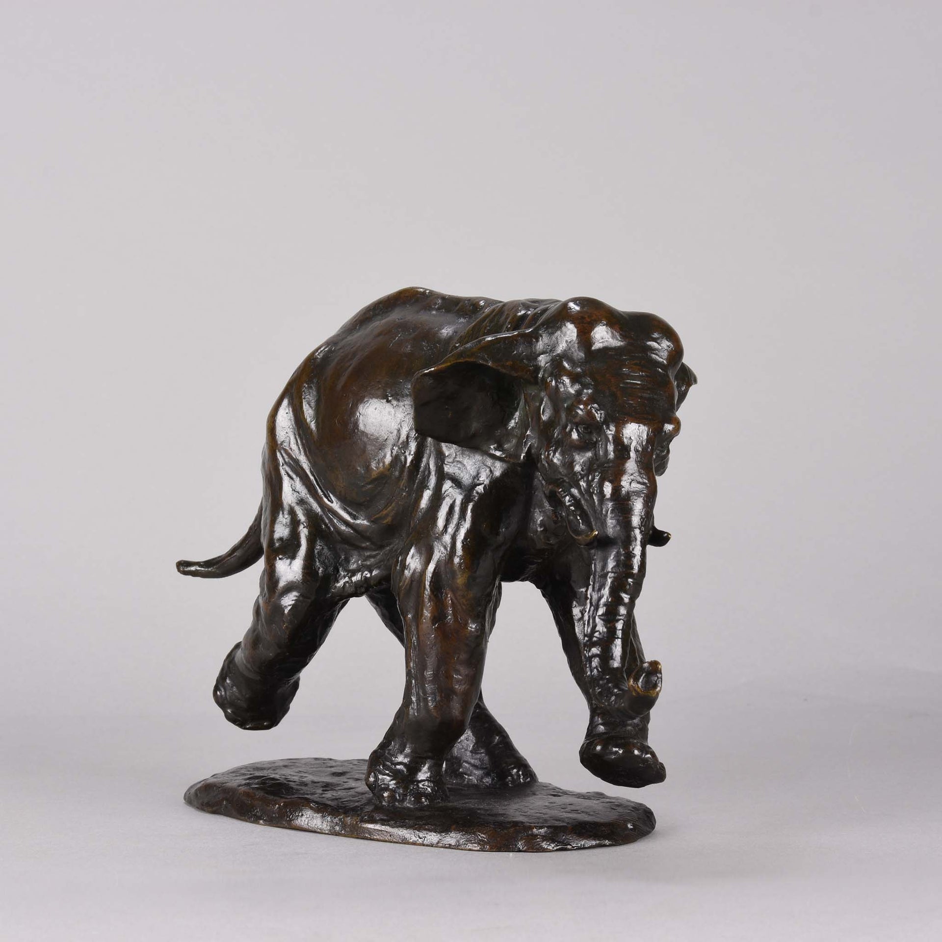 A impressive early 20th Century animalier bronze study of a powerful Indian elephant in confident pose. The surface of the bronze with excellent hand chased detail and very fine black, red and brown colours, signed P.E Fiaschi
