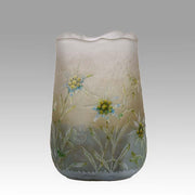 Wonderful cameo glass vase decorated with intricate Edelweiss flowers against a frosted landscape background, exhibiting very fine detail and enchanting colour. Signed to the base Daum Nancy and with Cross of Lorraine.