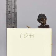 Arab Child & Ewer - Franz Xavier Bergman (1861-1936) probably the most famous of the Viennese sculptors who specialized in cold-painted bronzes. But first, let’s be clear of the difference between, say, our Arab and a bronze from antiquity. The latter has a surface untouched by anything other than time. Over the centuries such pieces develop a patina caused by oxidation and are highly prized by connoisseur collectors who appreciate the effects produced by age (which is why cleaning them is such a specialized task). The Arab Warrior is decorated with several layers of special, heavy lead-based polychrome paints, applied after objects are removed from the mould. Pieces decorated with enamels would normally be kiln-fired to melt the paint and ensure it has fused to the surface of the object to be decorated. Cold-painted bronzes are not subjected to the enamelling process – they remain cold – relying on the standard of painting to dictate the quality of the finished item. The technique was popular around the turn of the century and thousand upon thousand of the little animals (such as birds, foxes and even insects) and other figures, some as small as a few inches in height, poured out of Viennese foundries. Bergman’s manufacture was one of the leading makers. It was founded by his father, also Franz (1838–1894) a professional metal chaser from Gablonz, in Austria, who came to Vienna in 1860. Franz Xavier inherited the business on his father’s retirement and opened a bigger, much more productive foundry there in 1900. By no means all the animal figures came from Bergman’s works, but many did and sadly, many are unmarked. Those that are marked carry a capital “B” in a vase-shaped design as with the Arms Dealer, the presence of which removes any doubt as to the provenance. Bergman was also a fan of the exotic, producing larger figures and groups. Some depict Arabs, perhaps selling colourfully painted carpets, riding a camel or sitting in tents at an oasis complete with palm tree and water. Others are based on models from Bergman senior’s days. More rare are those wired for electricity and fitted small light bulbs to be used as table or bedside lamps. Being bigger objects, such pieces are more likely to carry the factory mark. Prices often run into four figures. Bergman junior also had an eye for the erotic, fantasy pieces that today’s collectors covet most. Always featuring a naked or scantily clad young woman in sensuous pose, Edwardian bachelors no doubt delighted in showing them off to their friends. But they were subtle too. The Camel figure, a model of an owl, a bear or some other unassuming object was constructed cleverly with a hidden button or lever which, when activated, causes the model to open, revealing the saucy secrets hidden inside. Expect to pay handsomely for such novelties. They were no doubt pricey when they were new. Manufacturing them was also something of a risk for Bergman, but he covered his tracks by marking them with the trade name “Nam Greb” to avoid upsetting his more conservative customers, and, perhaps, making them sound even more exotic. The joy of cold-painted bronzes in general and those by Bergman in particular are the vibrant colours that remain so in the best examples like the Arms Warrior on Camel.