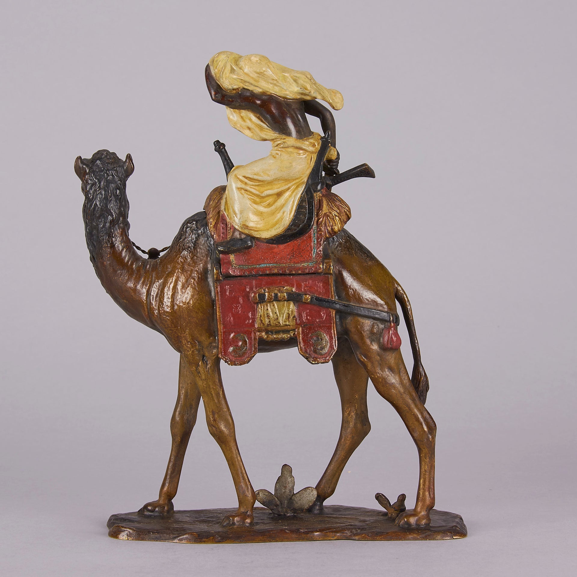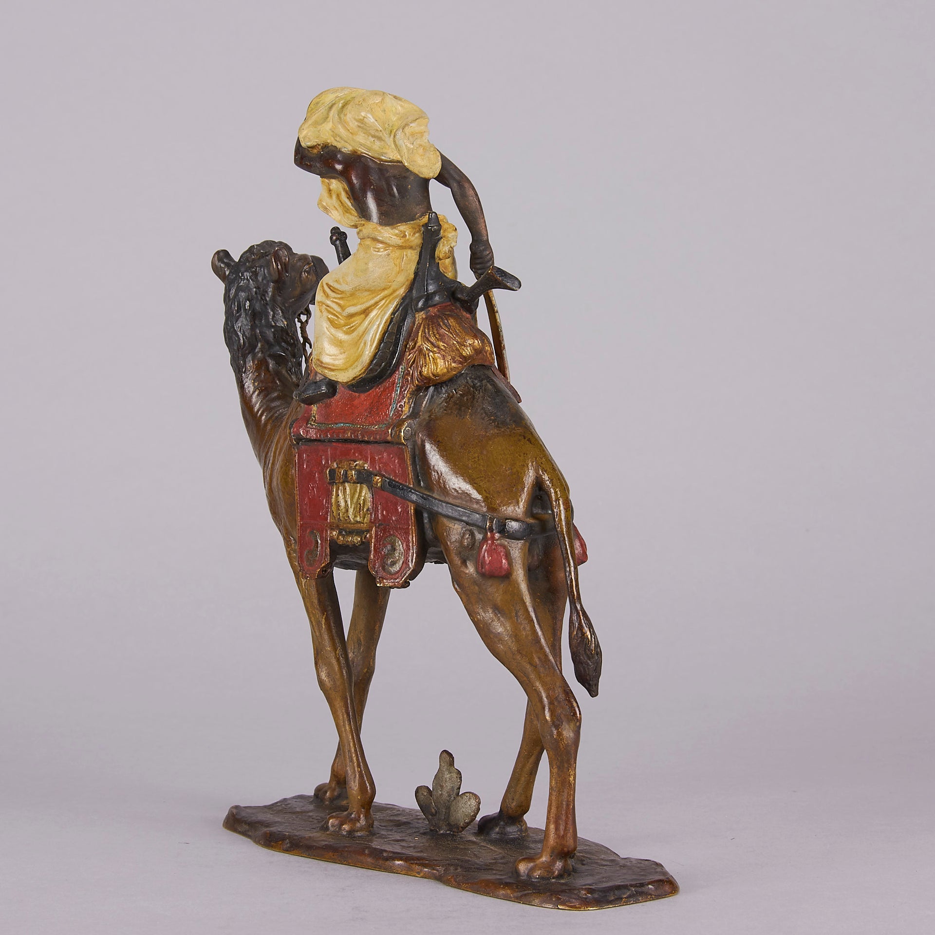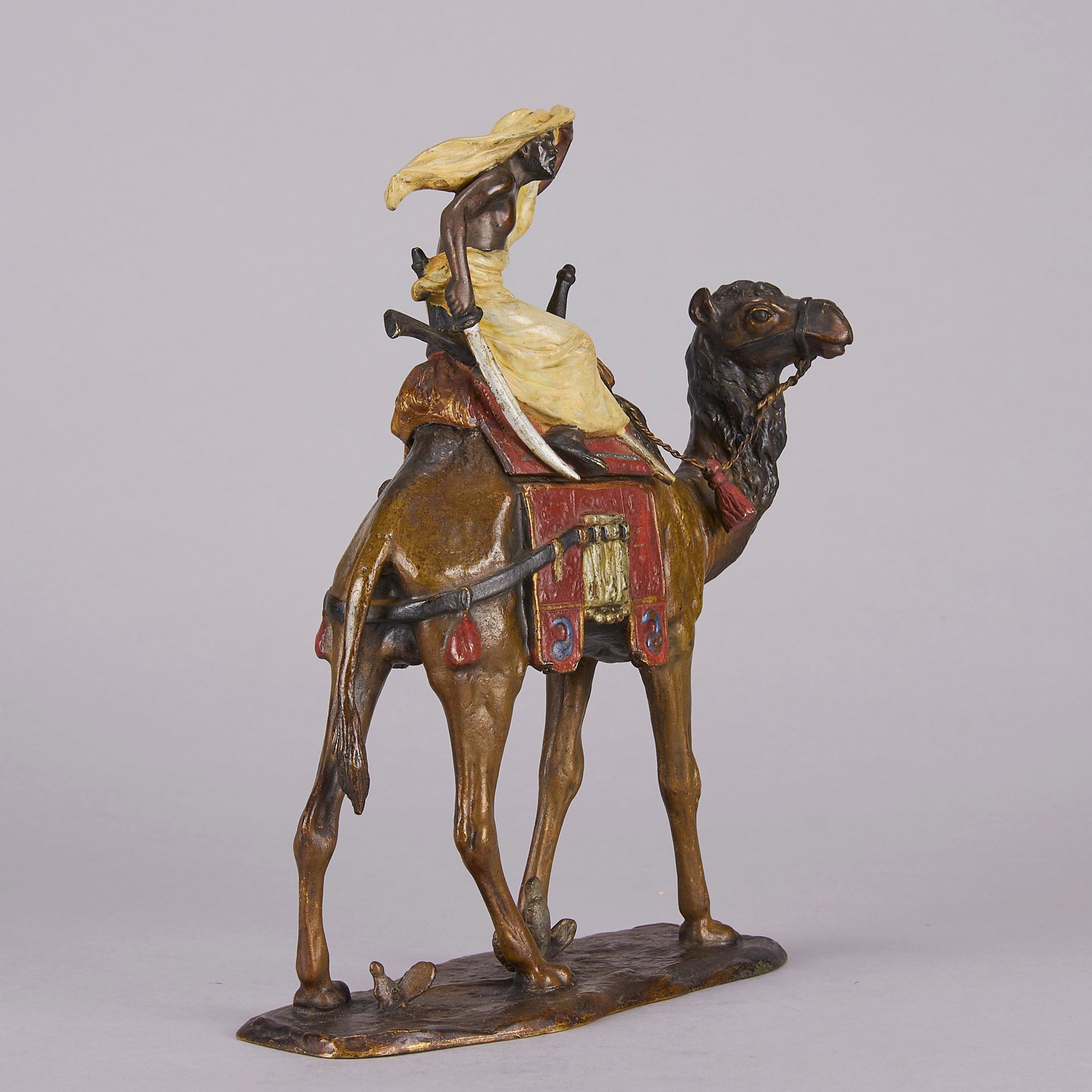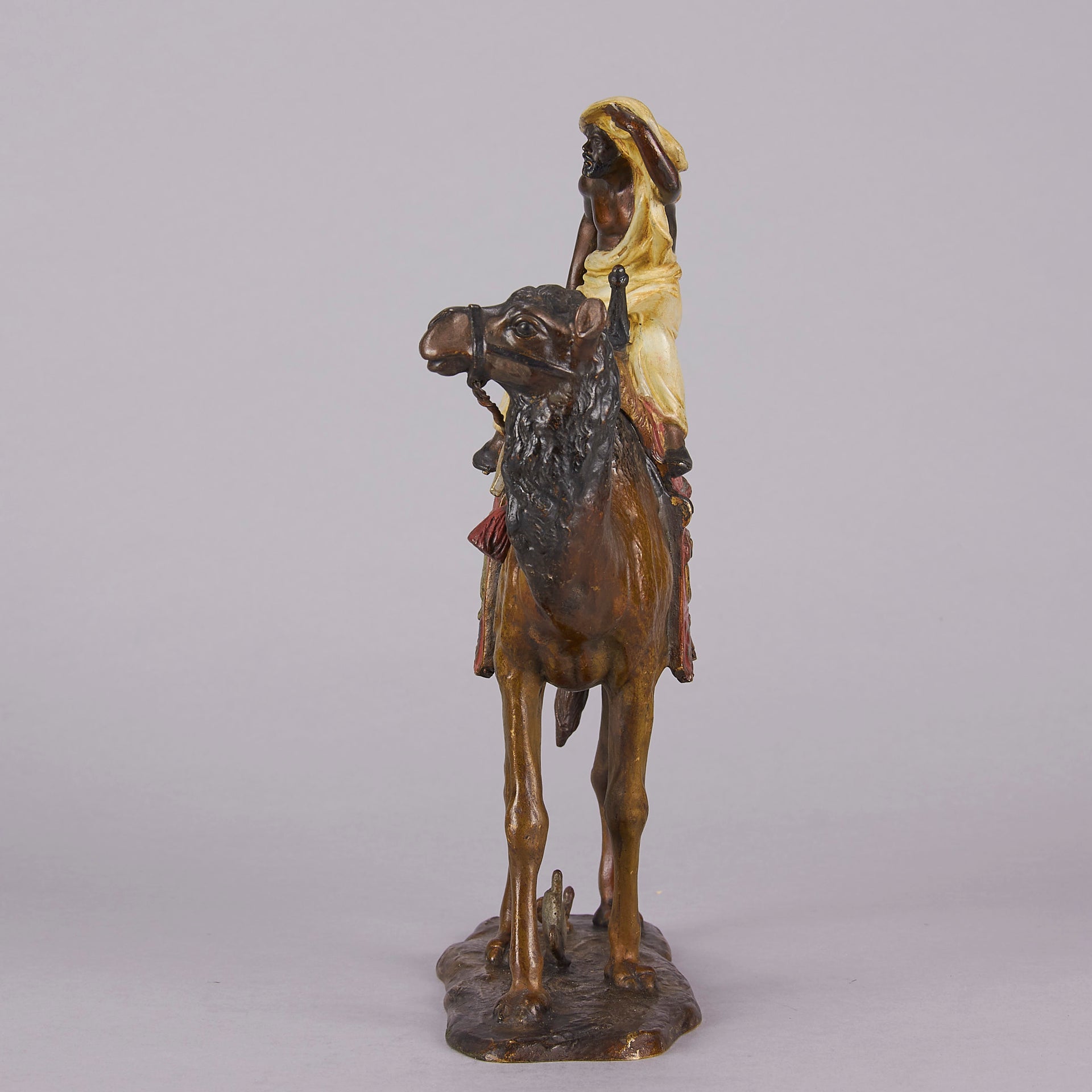 Bergman is celebrated for his great attention to detail and wonderful vibrant colours, Franz Xavier Bergman (1861-1936) is, arguably, the most famous of the Viennese cold-painted bronze artists, delighting in producing Oriental, Arab bronze and animal subjects, including Harem beauties, Arab tradesmen, Scribes and Arab Warrior and almost every animal subject that was known at the time.His father, also Franz Bergman (1838–1894), was a professional chaser (embosser) from Gablonz, Austria who came to Vienna and founded a small bronze factory in 1860. Franz Xavier inherited the company and opened a new foundry in 1900. There he created numerous cold painted (so named because the numerous layers of polychrome paint, applied to the bronze, were not fired to fix them to the metal) figures. Many other bronzes were still based on designs by Franz Bergman, the elder.