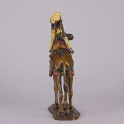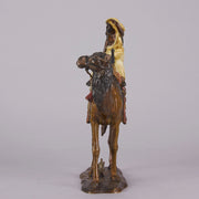 An impressive early 20th Century Austrian bronze study of a mounted Bedouin Warrior holding his sword, the surface of the bronze with rich cold painted colours and very fine hand finished detail, signed with the Bergman 'B' on rear side of saddle and stamped under base Made in Austria - Patent Applied For
