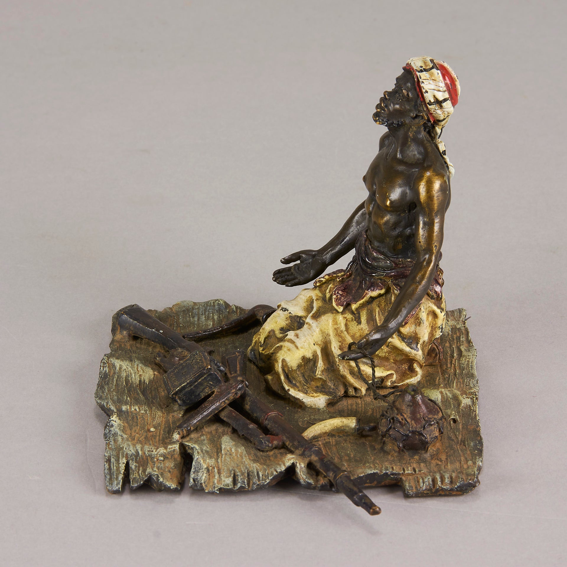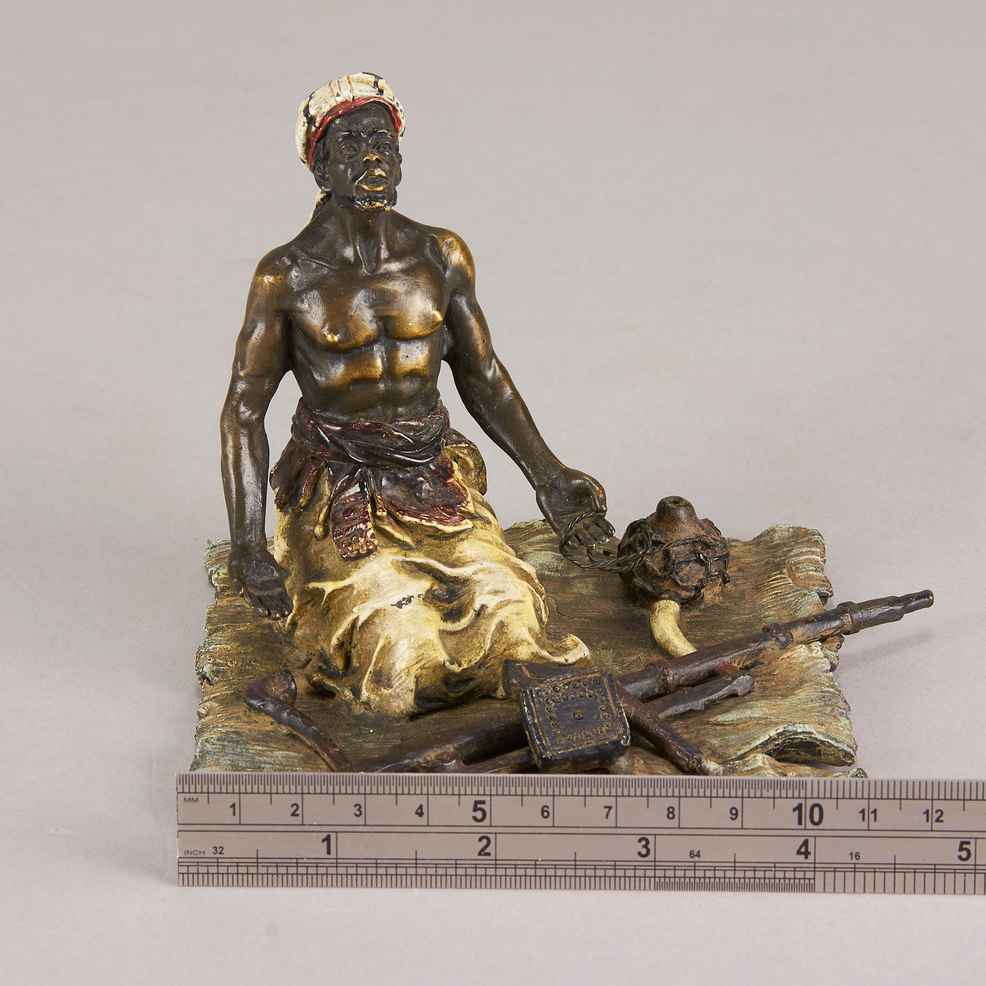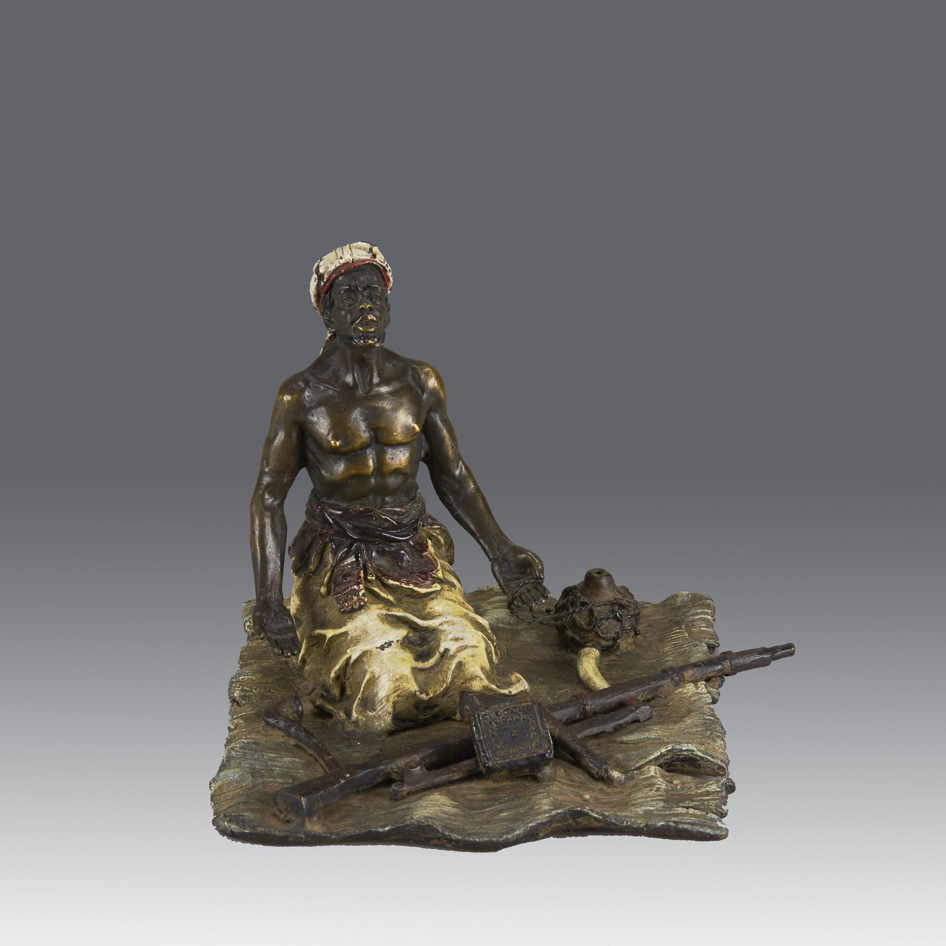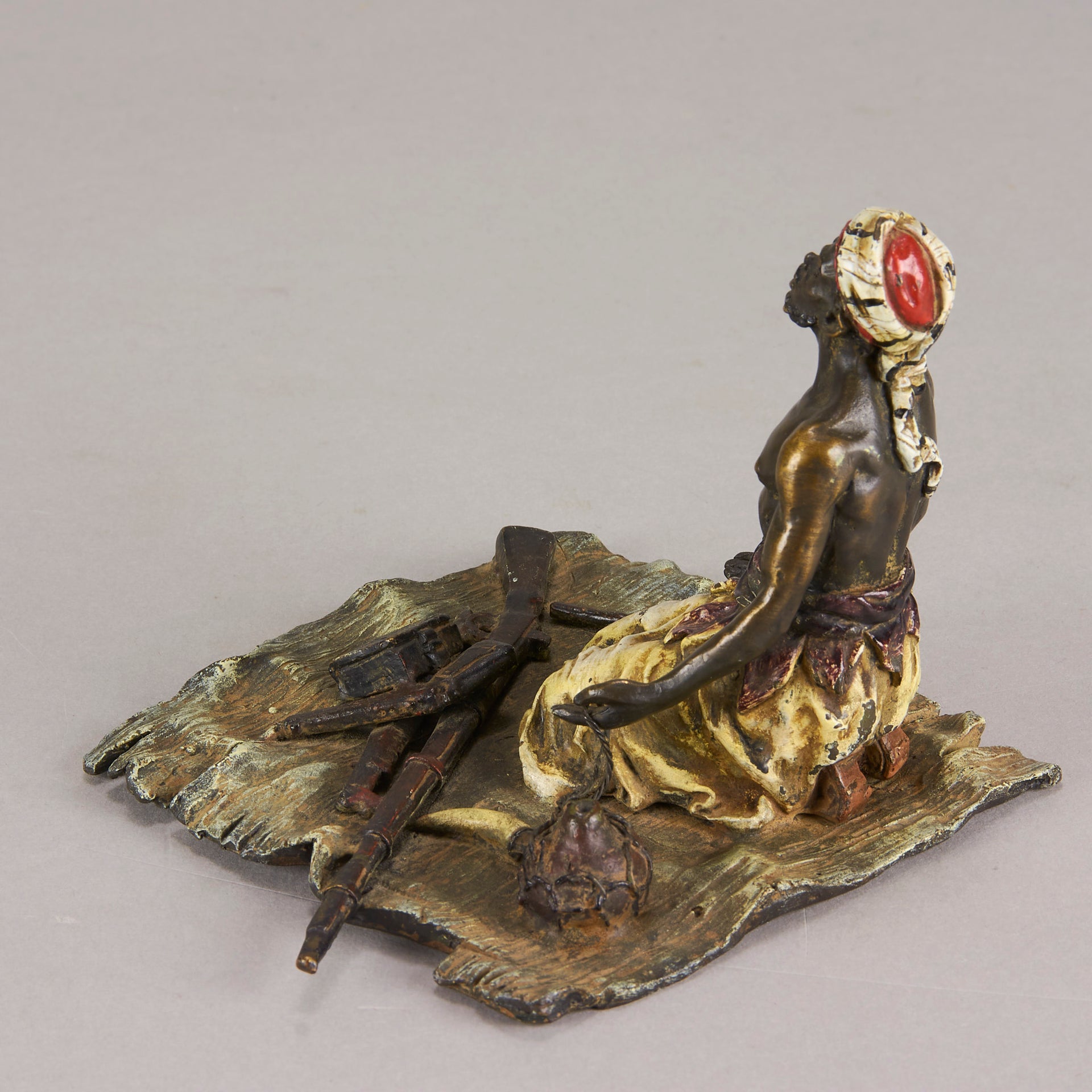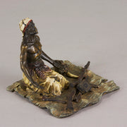 Bergman is celebrated for his great attention to detail and wonderful vibrant colours, Franz Xavier Bergman (1861-1936) is, arguably, the most famous of the Viennese cold-painted bronze artists, delighting in producing Oriental, Arab bronze and animal subjects, including Harem beauties, Arab tradesmen, Scribes and Arab Warrior and almost every animal subject that was known at the time.His father, also Franz Bergman (1838–1894), was a professional chaser (embosser) from Gablonz, Austria who came to Vienna and founded a small bronze factory in 1860. Franz Xavier inherited the company and opened a new foundry in 1900. There he created numerous cold painted (so named because the numerous layers of polychrome paint, applied to the bronze, were not fired to fix them to the metal) figures. Many other bronzes were still based on designs by Franz Bergman, the elder.