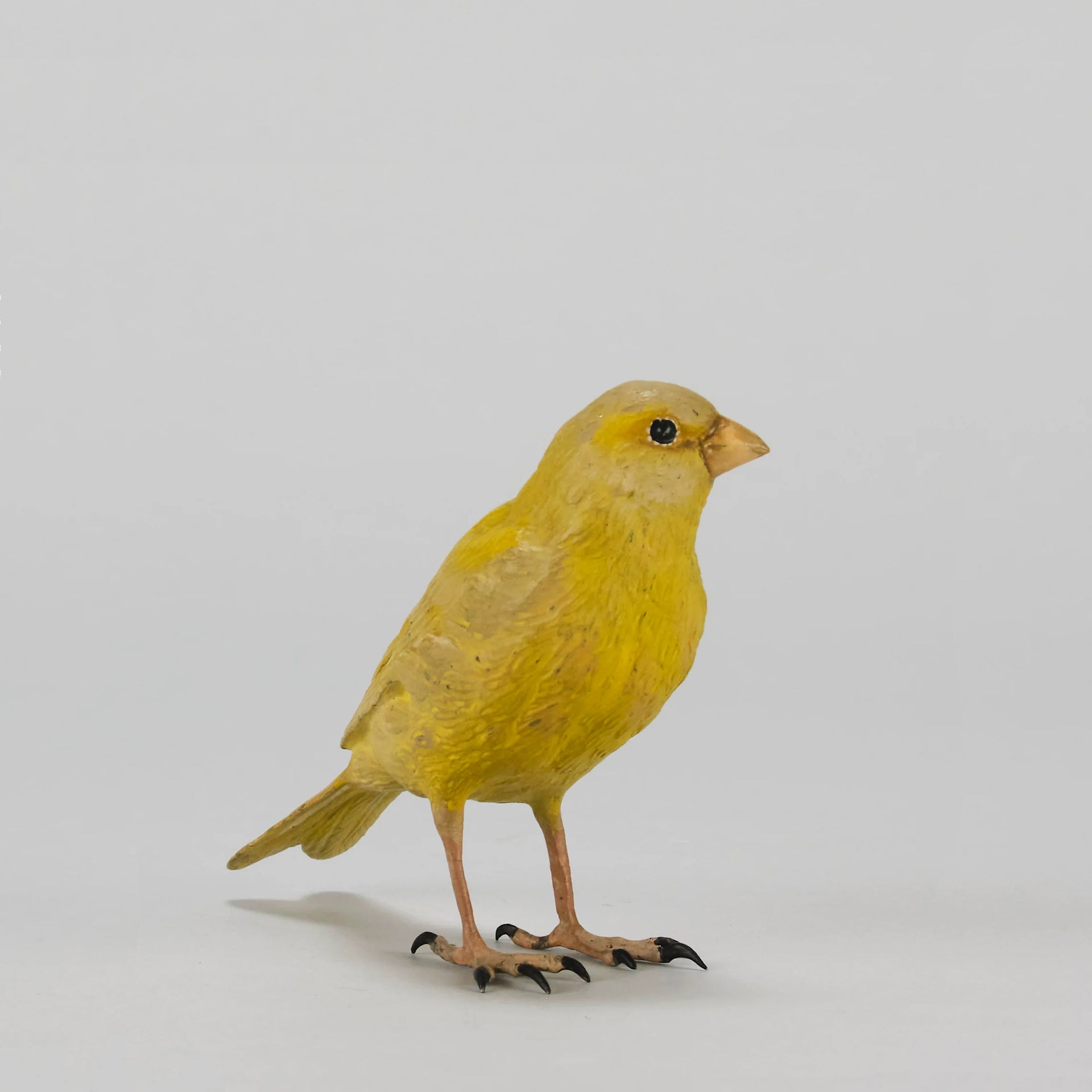 A delightful early 20th Century Austrian bronze study of a yellow canary bird. The bronze cold painted with vibrant yellow colours capturing the character of the bird and exhibiting good hand finished detail, signed with the Bergman 'B' in an amphora vase