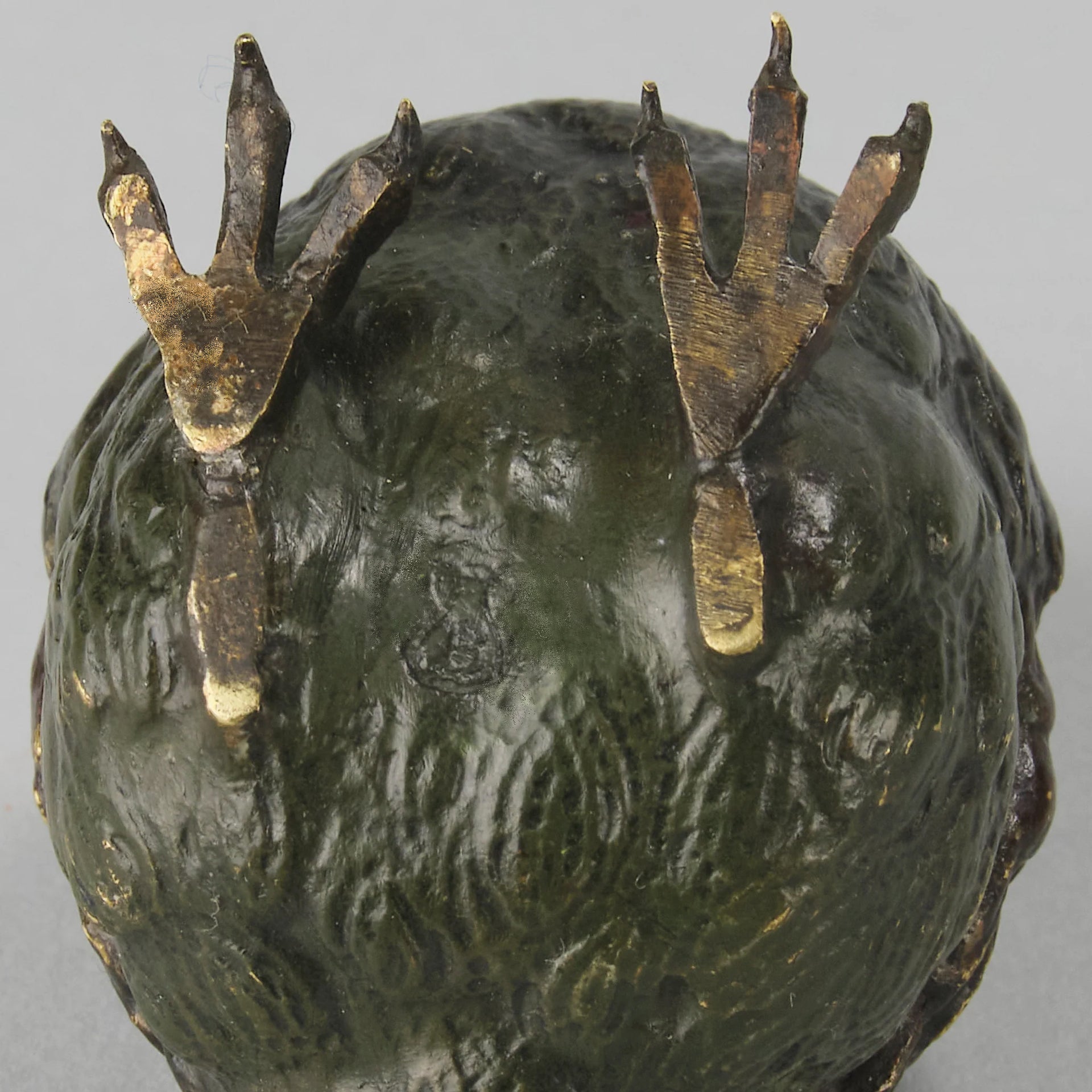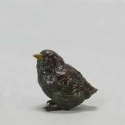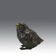 An endearing early 20th Century cold-painted Austrian bronze study of a standng chick with its head raised. The bronze with good colours and very fine hand finished detail, signed with the Bergman 'B' in an amphora vase