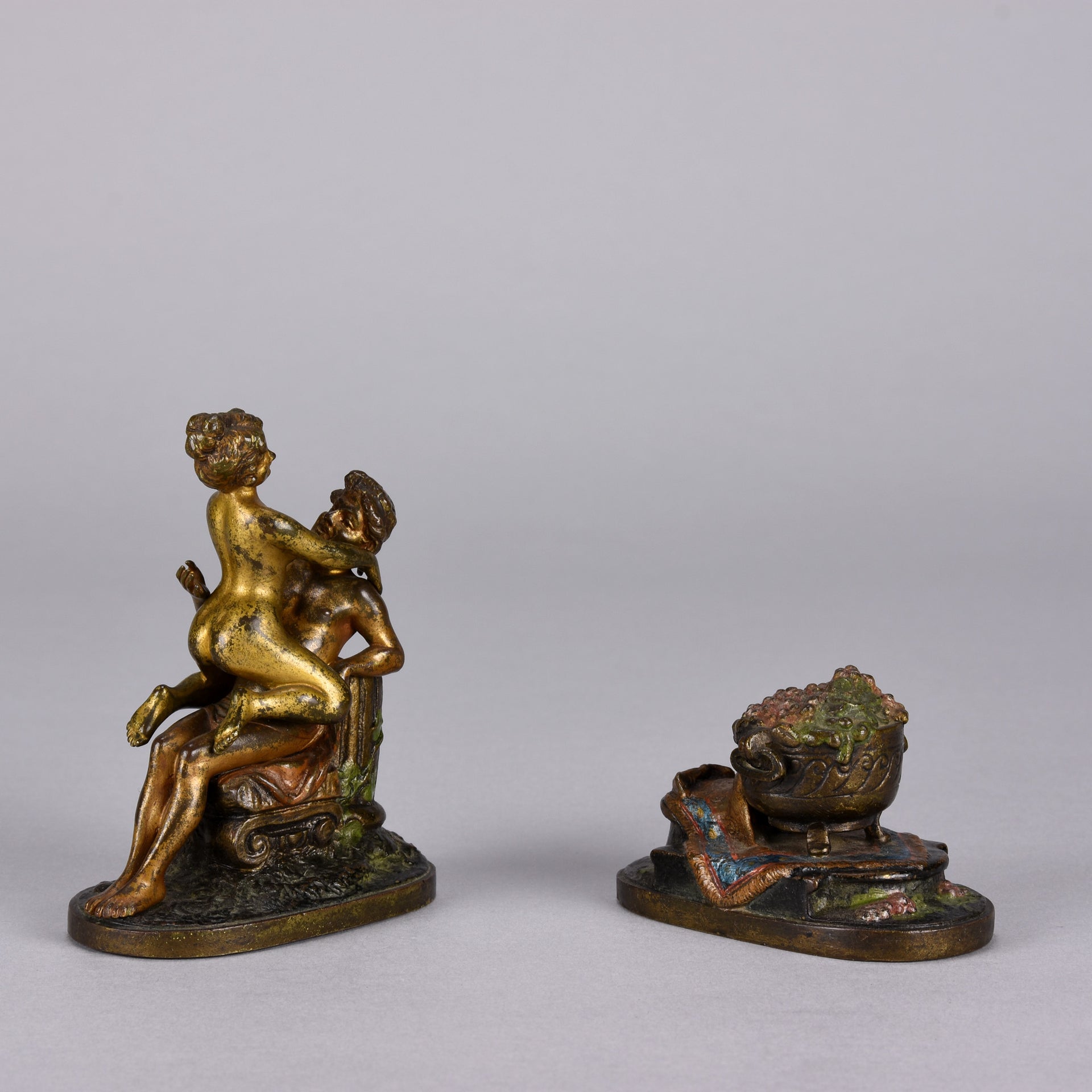 Look out for Bergman’s distinctive signature marks: a ‘B’ in a vase shape and ‘Nam Greb’. This latter, which reads ‘Bergman’ in reverse, was often used on his more erotic pieces, which were not to the taste of his more conservative clients or his family. These include sensuous poses of young women in the Orientalist style, sometimes the erotic nature of the subject was disguised by a covering that revealed all when a button was pushed or a lever moved. Carefully sculpted animals, such as owls, could often be opened to reveal an erotic female figure inside.