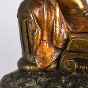 From the 17th Century onwards it was customary for the young Victorian gentleman to go on the obligatory tour of the East – the Grand Tour – as an educational rite of passage. Visiting countries and experiencing customs they had only ever heard about in stories, these young men were keen to show their families mementos of their experience, especially the lavish subjects of the Middle Eastern Arab world. The return trip would usually include a visit to Vienna, and here the ‘souvenir’ shops supplied a plethora of beautifully crafted sculptures with an Orientalist Arab flavour. These were often acquired to show their friends and families images of their travels. Bergman was noted for his detailed and colourful work and he produced a huge number of Orientalist subjects to cater for this market including this Arab Tent Lamp.