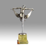 Although very little is known about Lorenzl’s early life we are aware that he was born in Austria in 1892 and was soon to become one of the most talented sculptors of the Art Deco Period. He started by working for a bronze foundry in Vienna Arsenal where he produced stunning Art Deco bronze statuettes. The majority of his works in bronze and ivory were of singular slim female nudes with long legs which conveyed elegance. His preference was for dancing poses which were not only evident in his singular statuettes but also in those attached to marble clocks, lamp bases and bookends.
