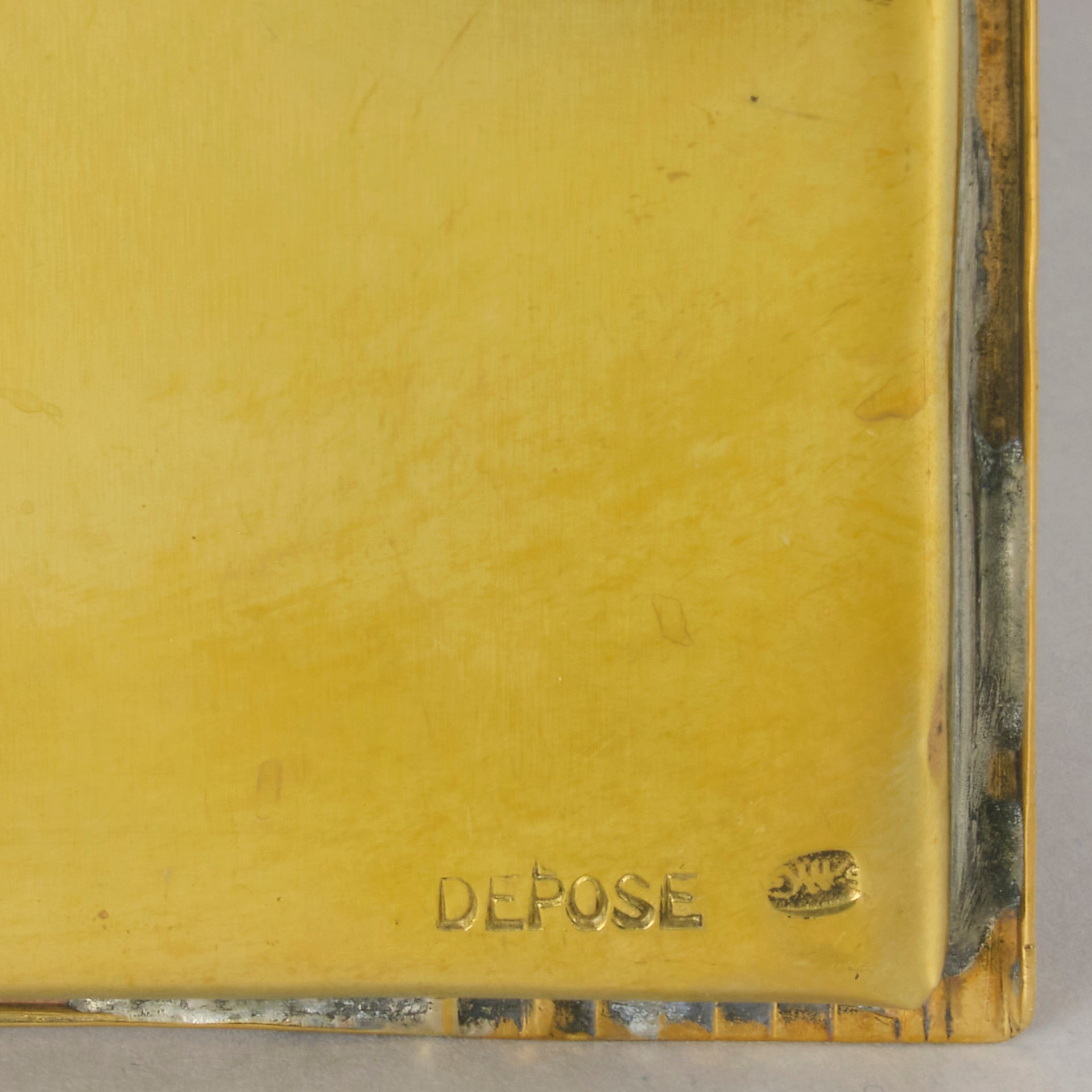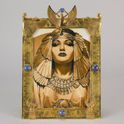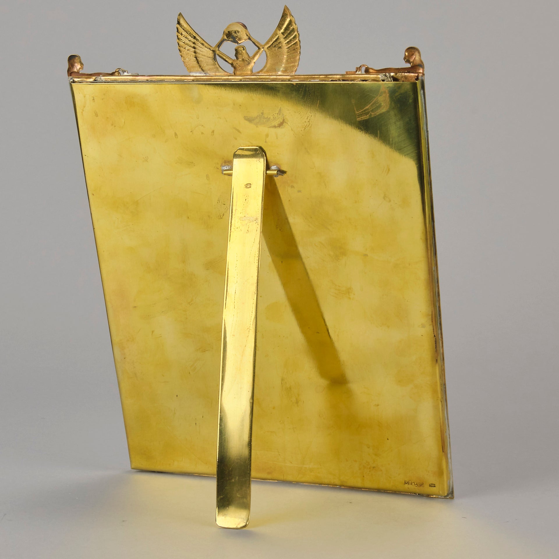 A wonderful early 20th Century Art Deco gilt bronze photo frame decorated with Art Deco Egyptian motifs and raised blue rondels, stamped Deposé