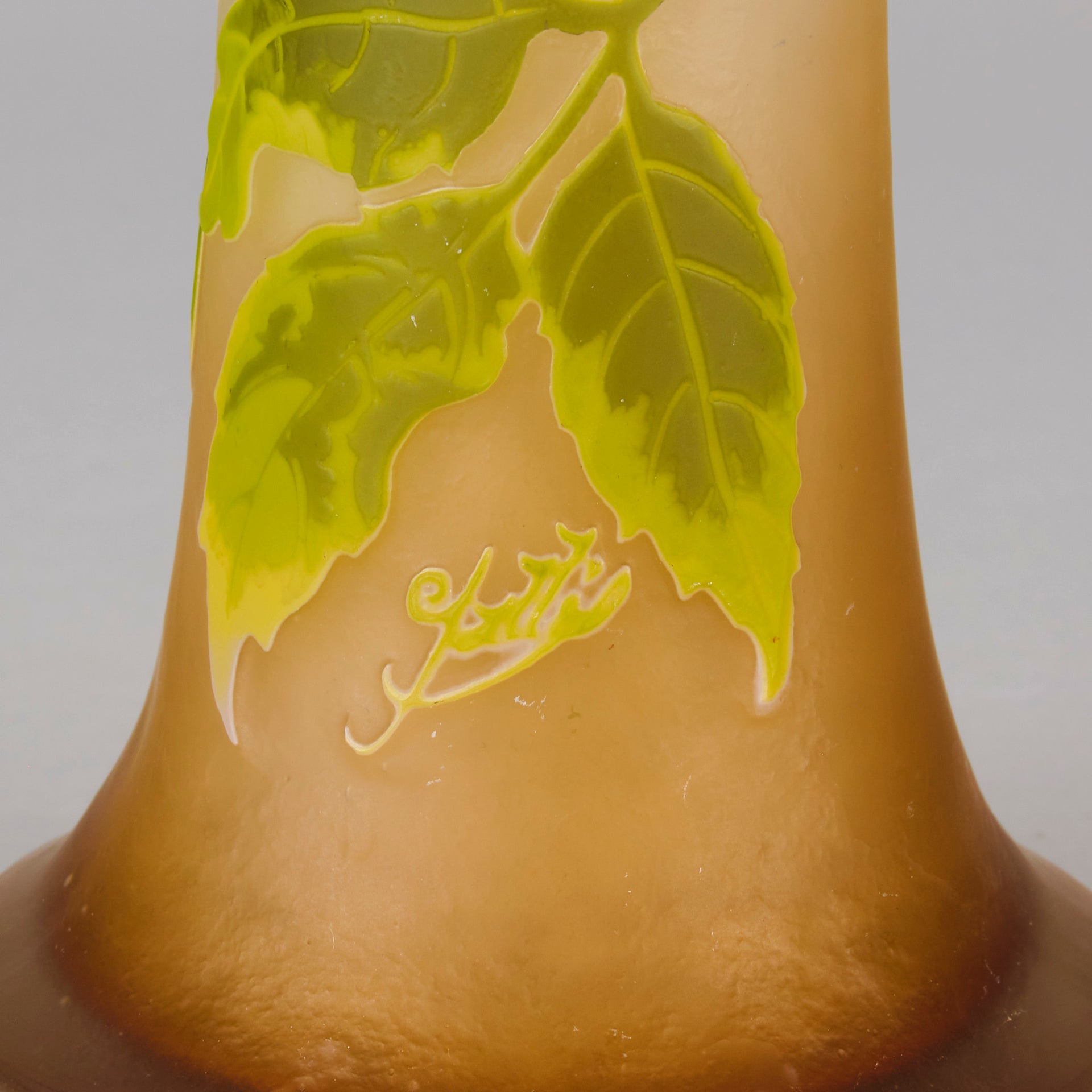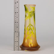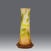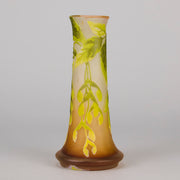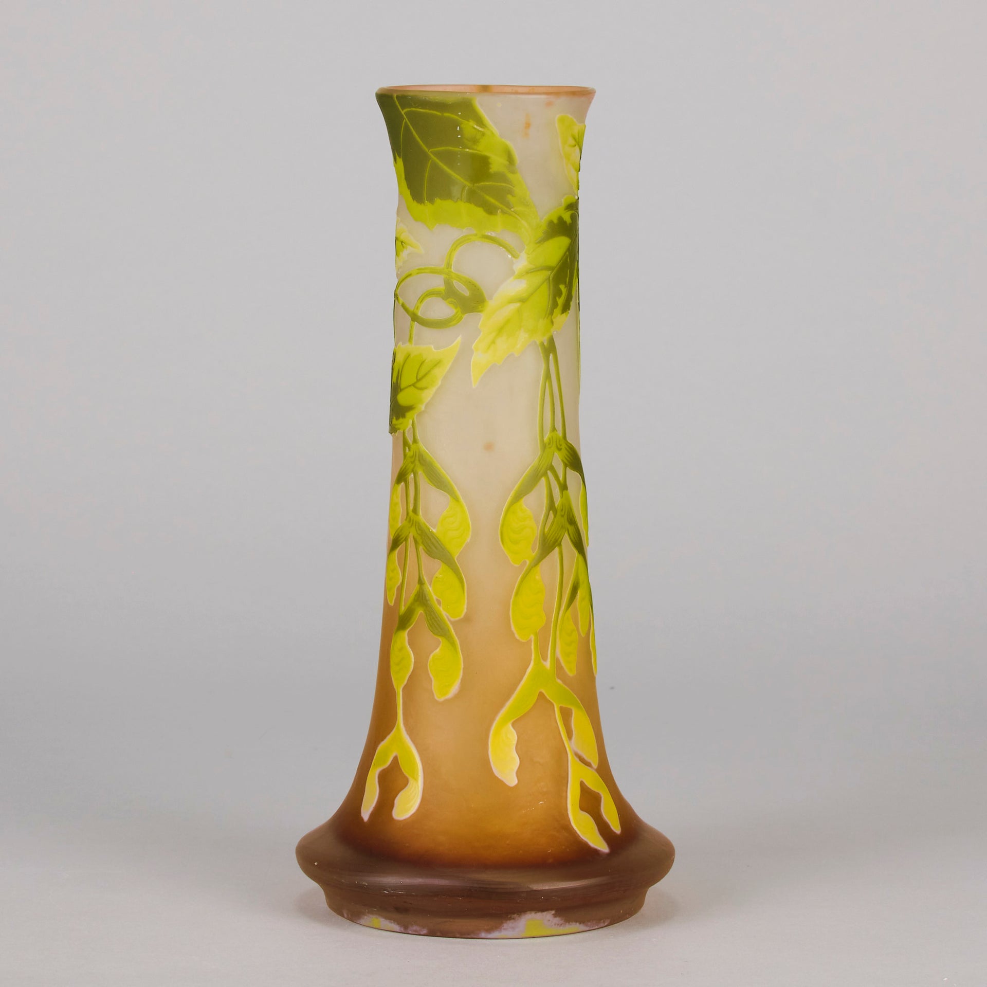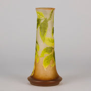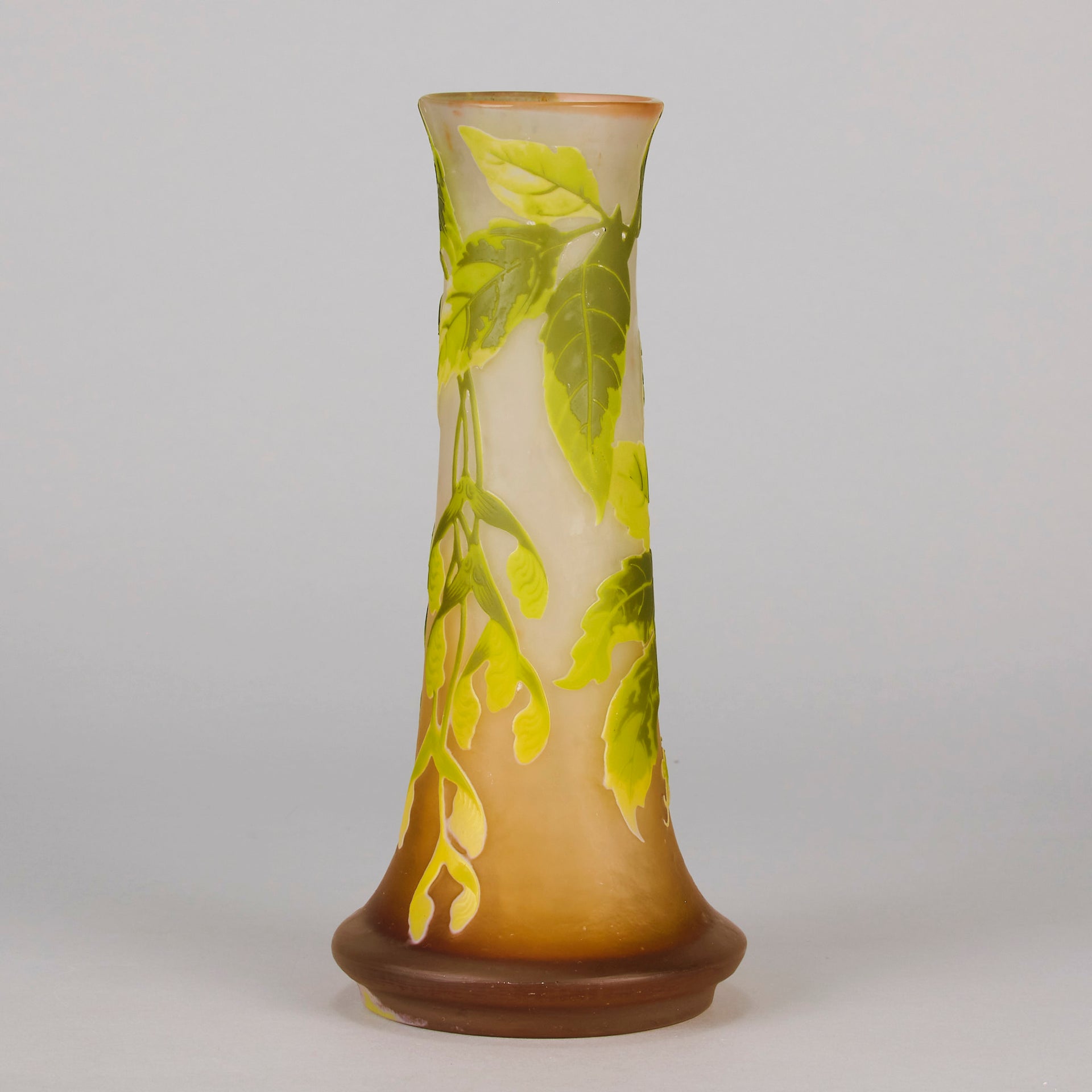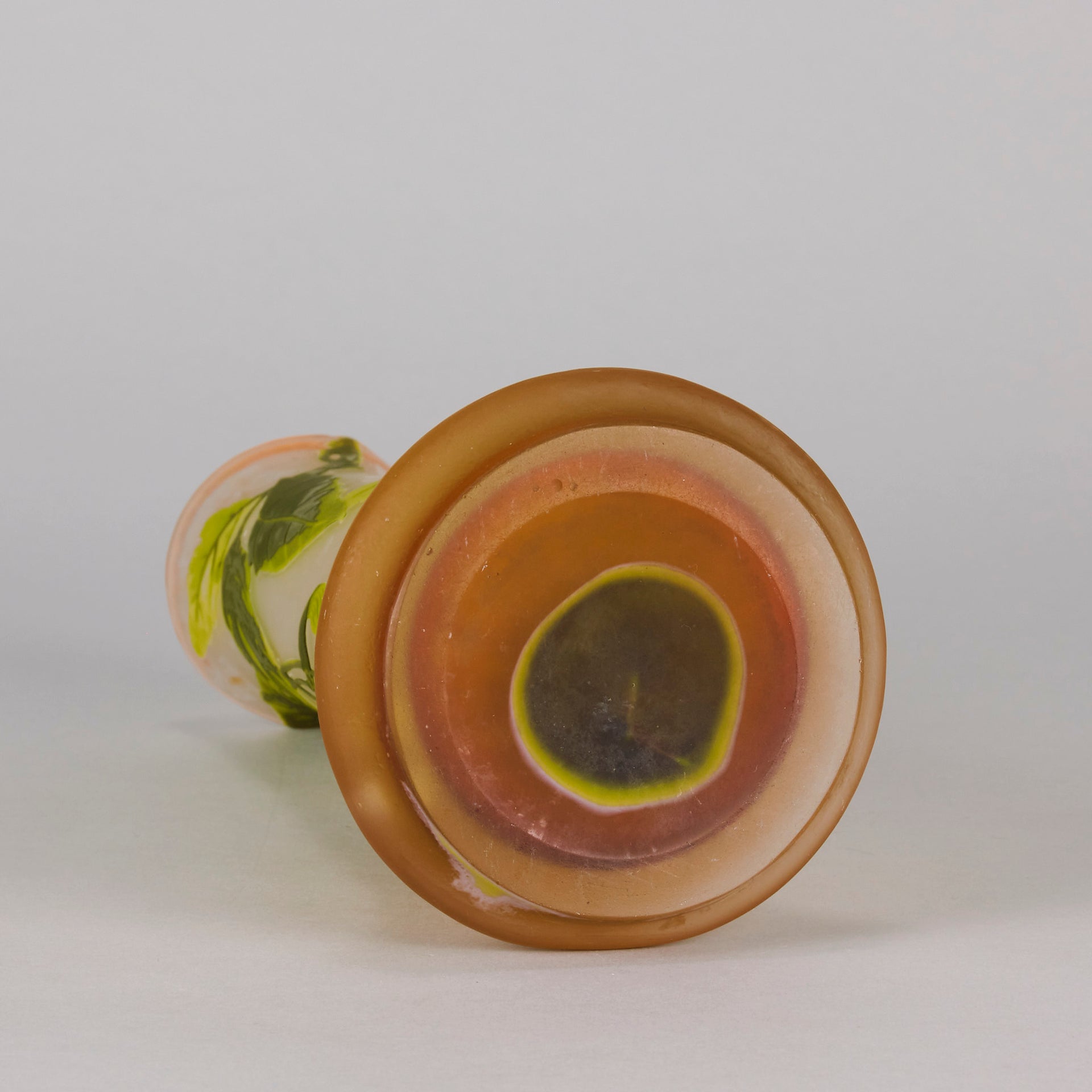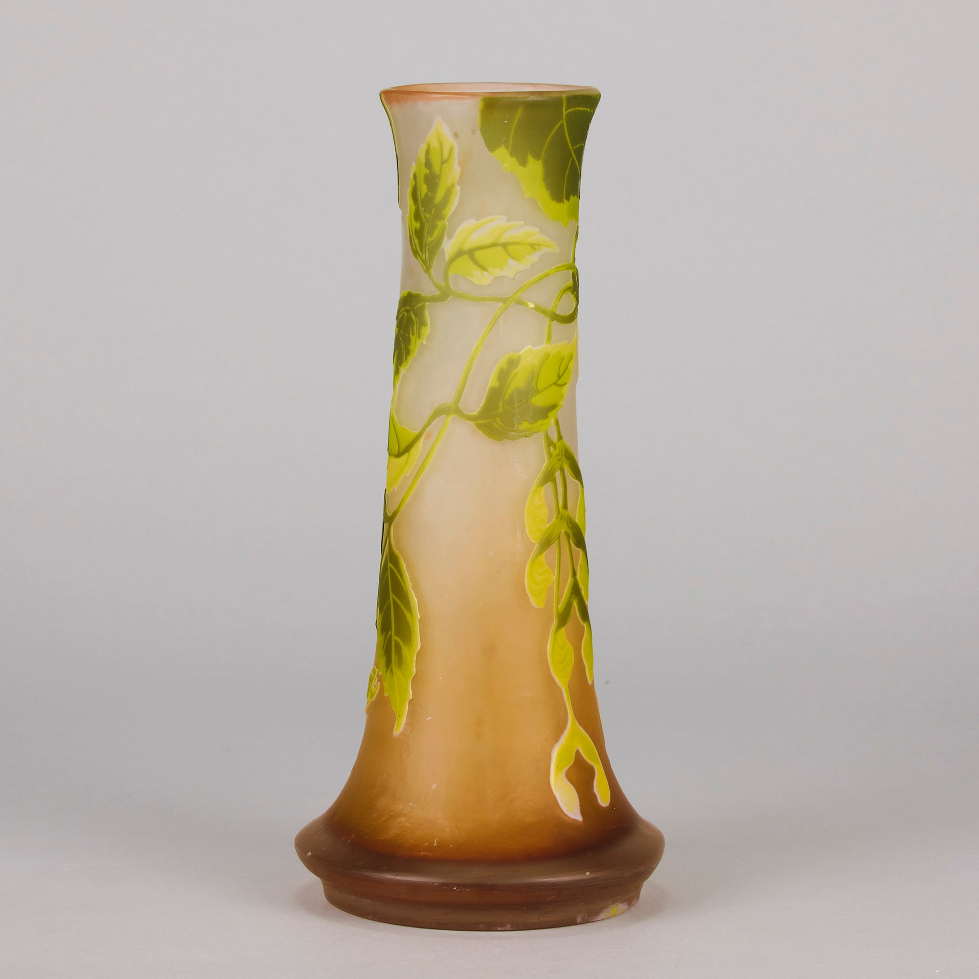 After being inspired by the glass works at the 1878 International Exhibition in Paris, particularly cameo works, Gallé made his mark as a true artist in glass at the 1884 Union Centrale des Arts Décoratifs in Paris where he showed 300 pieces of great artistic variety as well as technical expertise. He returned to the International Exhibition in Paris in 1889 to present his own new types of glass. The pieces featured new vase shapes, extraordinary new colours, carved cameo and pate de verre work. The event was a breakthrough for him and the Art Nouveau style in general, with his pieces beginning to be widely imitated (notably by the likes of the Daum brothers.)