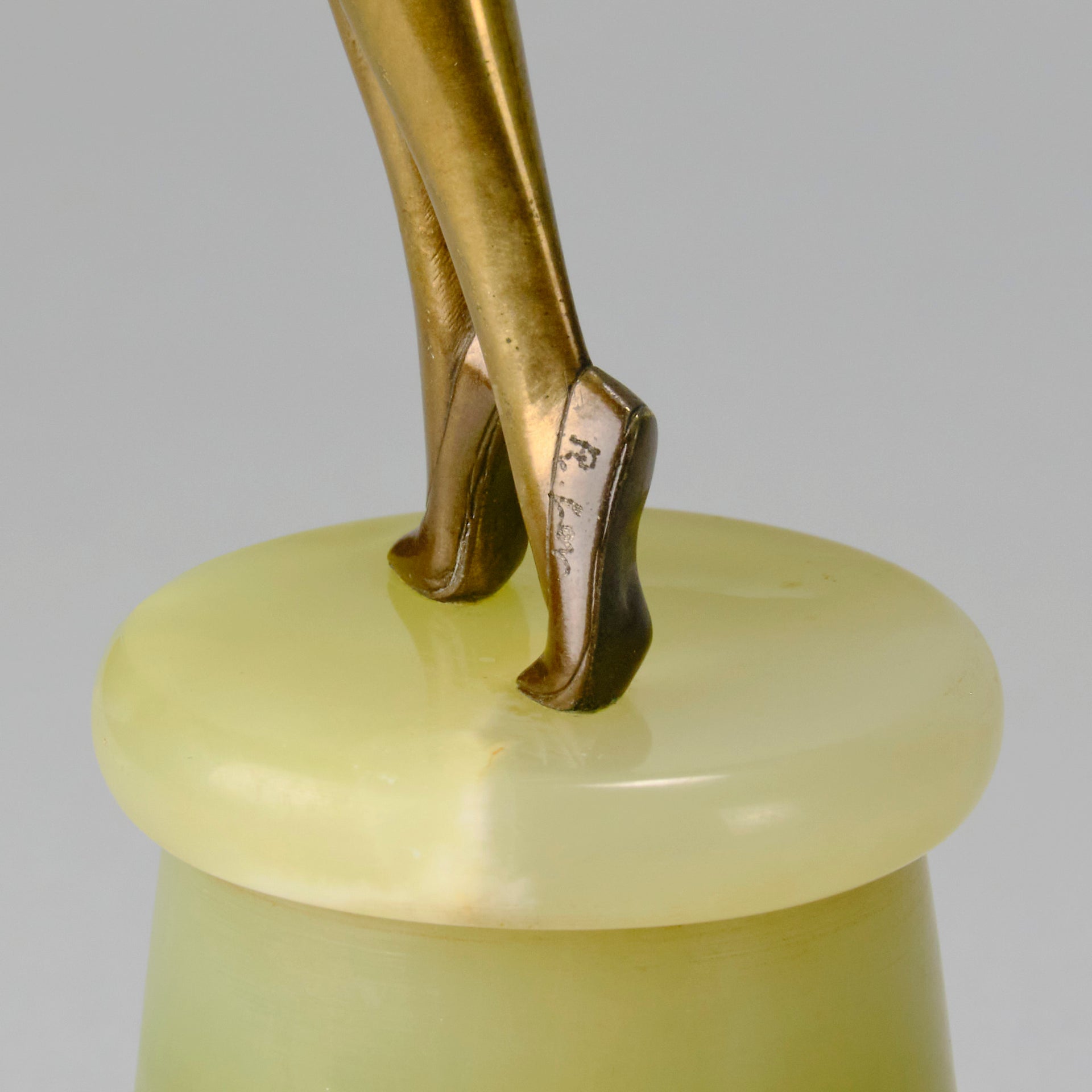 Although very little is known about Lorenzl’s early life we are aware that he was born in Austria in 1892 and was soon to become one of the most talented sculptors of the Art Deco Period. He started by working for a bronze foundry in Vienna Arsenal where he produced stunning Art Deco bronze statuettes. The majority of his works in bronze and ivory were of singular slim female nudes with long legs which conveyed elegance. His preference was for dancing poses which were not only evident in his singular statuettes but also in those attached to marble clocks, lamp bases and bookends.
