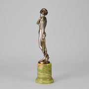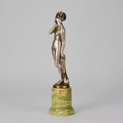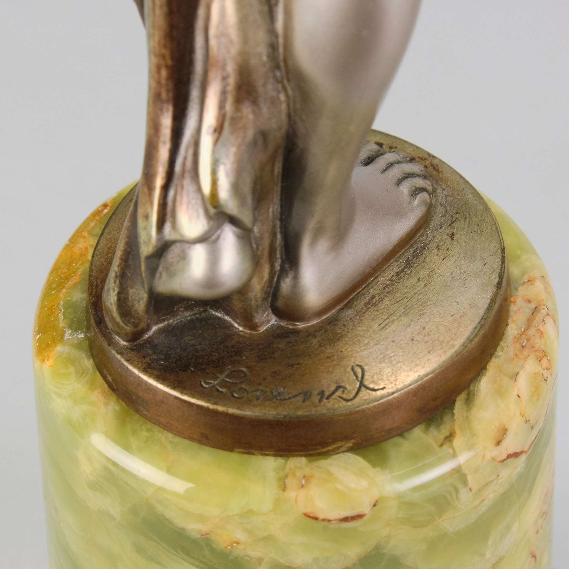 Although very little is known about Lorenzl’s early life we are aware that he was born in Austria in 1892 and was soon to become one of the most talented sculptors of the Art Deco Period. He started by working for a bronze foundry in Vienna Arsenal where he produced stunning Art Deco bronze statuettes. The majority of his works in bronze and ivory were of singular slim female nudes with long legs which conveyed elegance. His preference was for dancing poses which were not only evident in his singular statuettes but also in those attached to marble clocks, lamp bases and bookends.