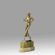 From his designs in bronze and ivory Lorenzl went on to work for the Austrian ceramics company Goldscheider. Again creating stunning sculptures of the female form collector’s are more aware of this period and his sculptures in ceramic than they are of his earlier bronze and ivory statuettes. Inspired by shape and bold colours Lorenzl’s sculptures had clean lines and geometric shapes. Although each piece possess great movement there was no intricacy or attention to detail and most of his figures wore their hair in the boyish bob which was fashionable at the time, making these simplistic and stylish figurines the epitome of Art Deco Bronze design.