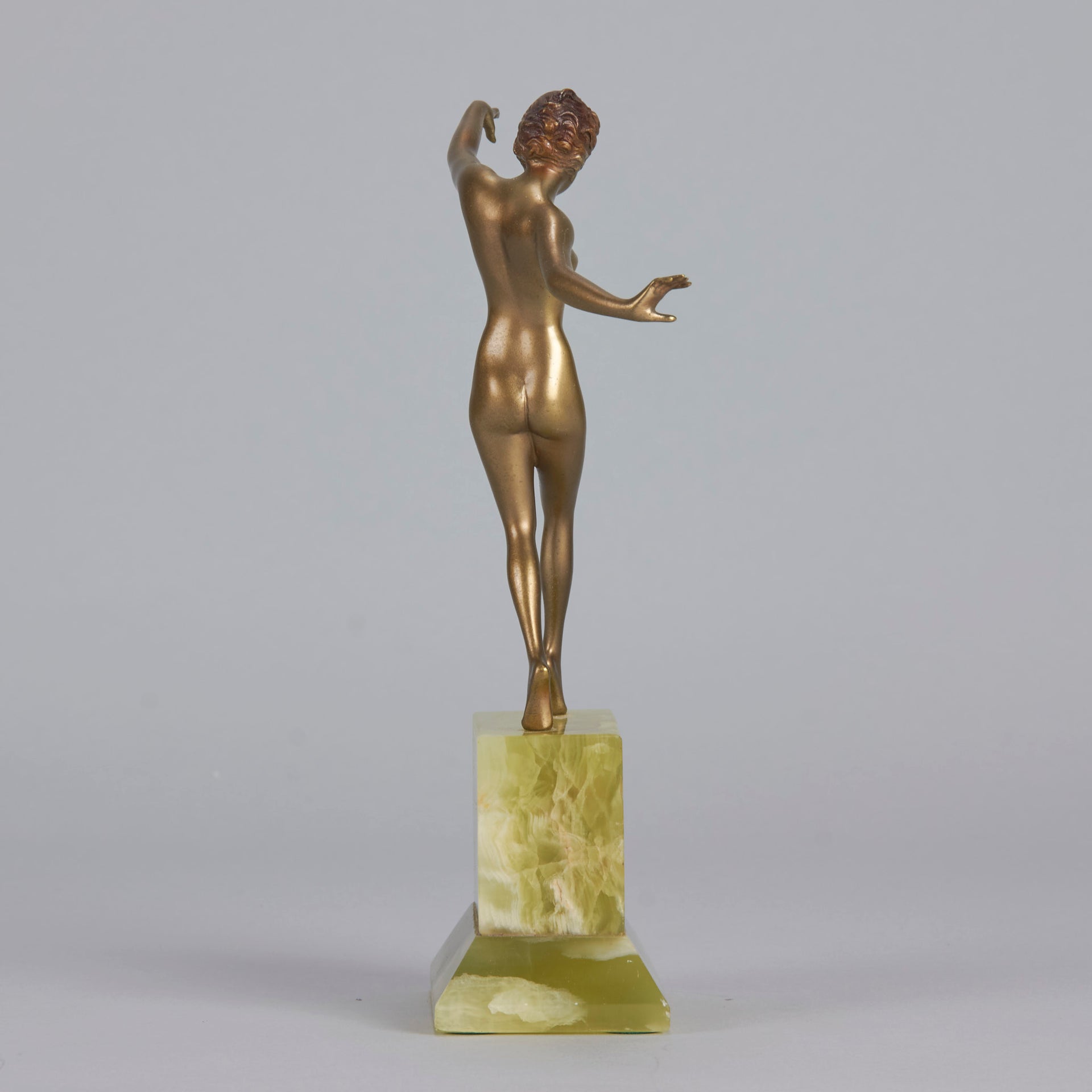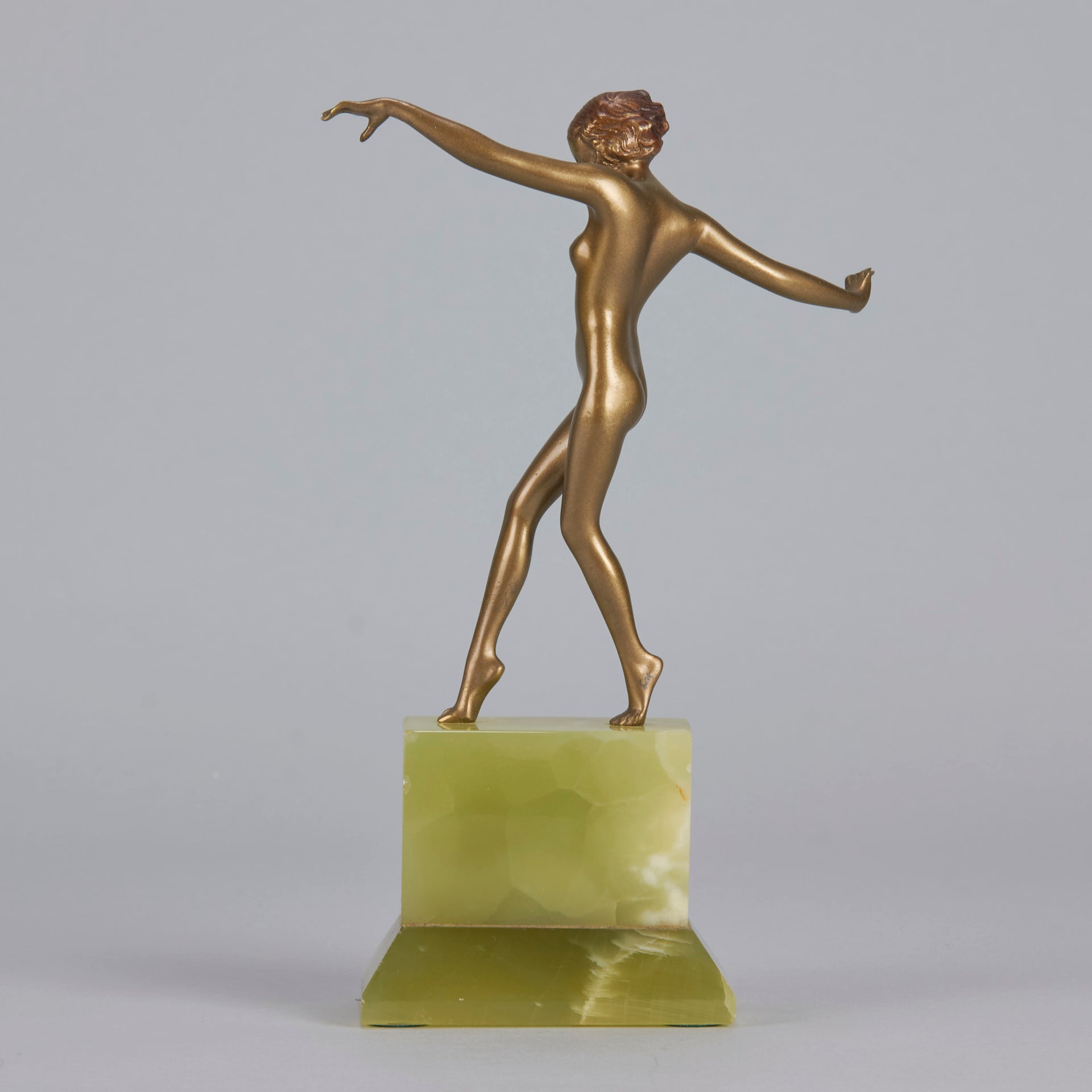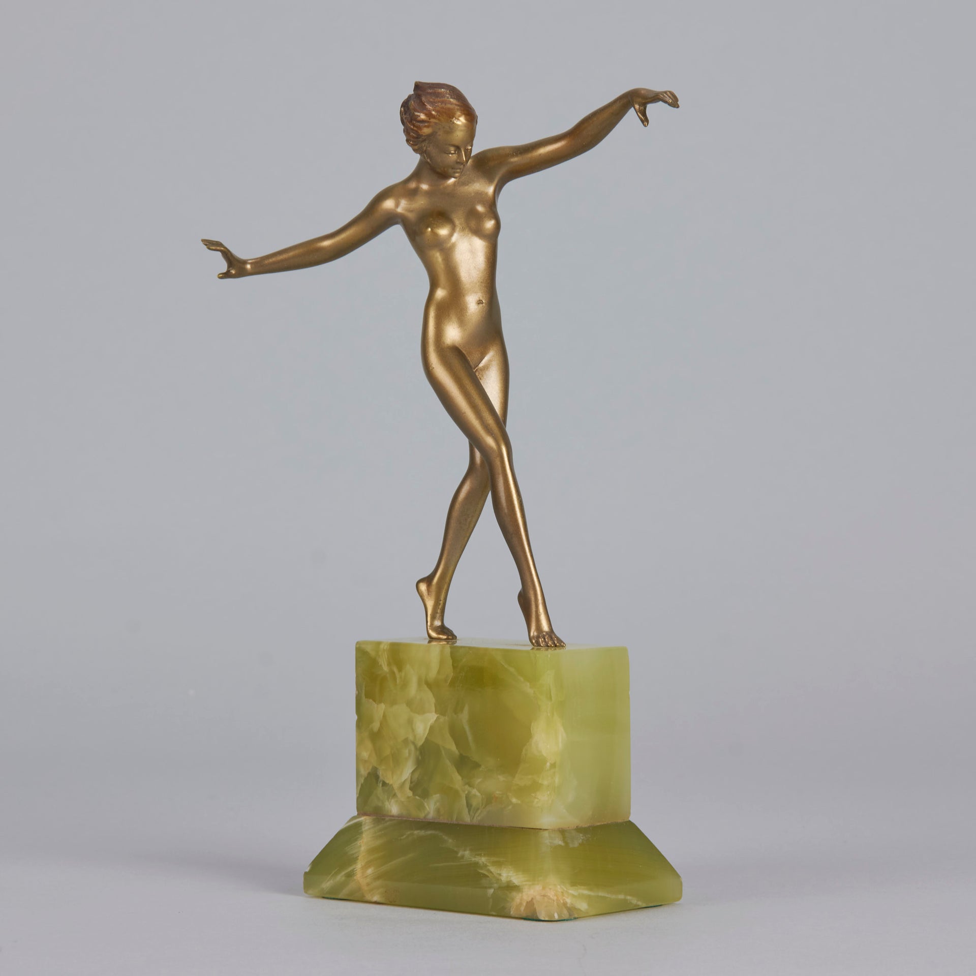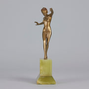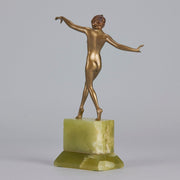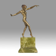 Although very little is known about Lorenzl’s early life we are aware that he was born in Austria in 1892 and was soon to become one of the most talented sculptors of the Art Deco Period. He started by working for a bronze foundry in Vienna Arsenal where he produced stunning Art Deco bronze statuettes. The majority of his works in bronze and ivory were of singular slim female nudes with long legs which conveyed elegance. His preference was for dancing poses which were not only evident in his singular statuettes but also in those attached to marble clocks, lamp bases and bookends.