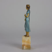 From his designs in bronze and ivory Lorenzl went on to work for the Austrian ceramics company Goldscheider. Again creating stunning sculptures of the female form collector’s are more aware of this period and his sculptures in ceramic than they are of his earlier bronze and ivory statuettes. Inspired by shape and bold colours Lorenzl’s sculptures had clean lines and geometric shapes. Although each piece possess great movement there was no intricacy or attention to detail and most of his figures wore their hair in the boyish bob which was fashionable at the time, making these simplistic and stylish figurines the epitome of Art Deco Bronze design.