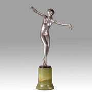 Although very little is known about Lorenzl’s early life we are aware that he was born in Austria in 1892 and was soon to become one of the most talented sculptors of the Art Deco Period. He started by working for a bronze foundry in Vienna Arsenal where he produced stunning Art Deco bronze statuettes. The majority of his works in bronze and ivory were of singular slim female nudes with long legs which conveyed elegance. His preference was for dancing poses which were not only evident in his singular statuettes but also in those attached to marble clocks, lamp bases and bookends.