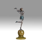 Although very little is known about Lorenzl’s early life we are aware that he was born in Austria in 1892 and was soon to become one of the most talented sculptors of the Art Deco Period. He started by working for a bronze foundry in Vienna Arsenal where he produced stunning Art Deco bronze statuettes. The majority of his works in bronze and ivory were of singular slim female nudes with long legs which conveyed elegance. His preference was for dancing poses which were not only evident in his singular statuettes but also in those attached to marble clocks, lamp bases and bookends.