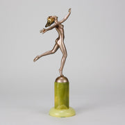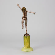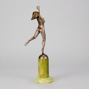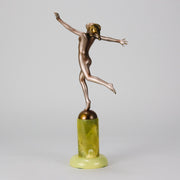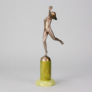 Although very little is known about Lorenzl’s early life we are aware that he was born in Austria in 1892 and was soon to become one of the most talented sculptors of the Art Deco Period. He started by working for a bronze foundry in Vienna Arsenal where he produced stunning Art Deco bronze statuettes. The majority of his works in bronze and ivory were of singular slim female nudes with long legs which conveyed elegance. His preference was for dancing poses which were not only evident in his singular statuettes but also in those attached to marble clocks, lamp bases and bookends.