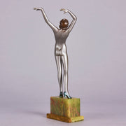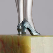 Although very little is known about Lorenzl’s early life, he was born in Austria in 1892 and became one of the most talented sculptors of the Art Deco Period. He started by working for a bronze foundry in Vienna Arsenal where he produced stunning Art Deco bronze statuettes. The majority of his works in bronze and chryselephantine were of singular slim female nudes with long legs which conveyed elegance. His preference was for dancing poses which were not only evident in his singular statuettes but also in those attached to marble clocks, lamp bases and bookends.