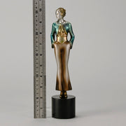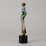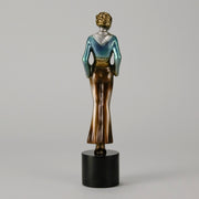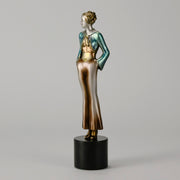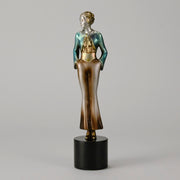 From his designs in bronze and ivory Lorenzl went on to work for the Austrian ceramics company Goldscheider. Again creating stunning sculptures of the female form collector’s are more aware of this period and his sculptures in ceramic than they are of his earlier bronze and ivory statuettes. Inspired by shape and bold colours Lorenzl’s sculptures had clean lines and geometric shapes. Although each piece possess great movement there was no intricacy or attention to detail and most of his figures wore their hair in the boyish bob which was fashionable at the time, making these simplistic and stylish figurines the epitome of Art Deco Bronze design.