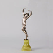 Although very little is known about Lorenzl’s early life we are aware that he was born in Austria in 1892 and was soon to become one of the most talented sculptors of the Art Deco Period. He started by working for a bronze foundry in Vienna Arsenal where he produced stunning Art Deco bronze statuettes. The majority of his works in bronze and ivory were of singular slim female nudes with long legs which conveyed elegance. His preference was for dancing poses which were not only evident in his singular statuettes but also in those attached to marble clocks, lamp bases and bookends.