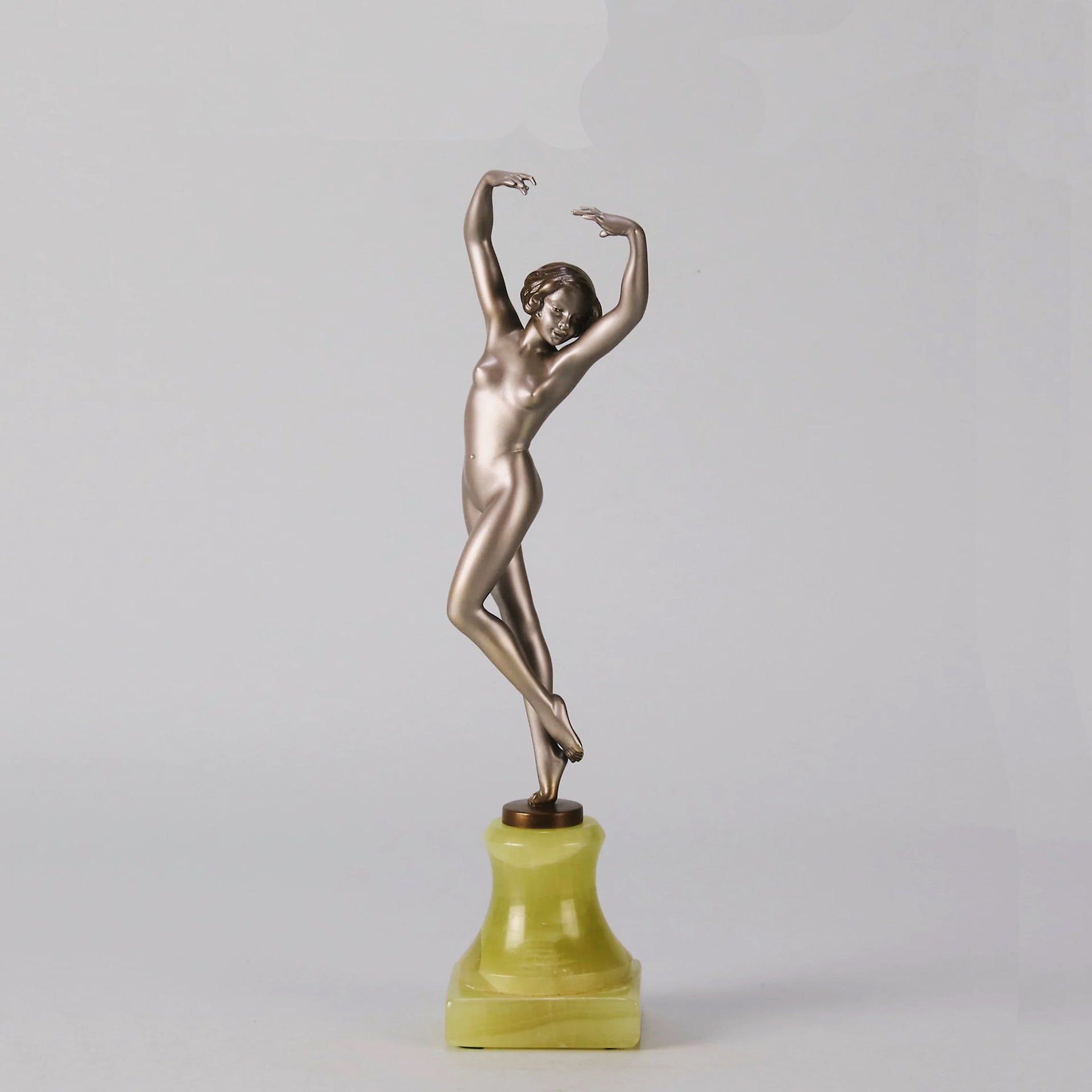 A very fine early 20th Century Art Deco cold painted bronze figure of a beautiful dancer in an attractive pose whilst in the midst of a graceful movement, with excellent colour and fine hand finished detail, raised on a shaped onyx base. Signed Lorenzl, inscribed Vivian & Made in Austria. This subject is part of the 'Vivian Collection', a series of six models of a dancer in dramatic poses.